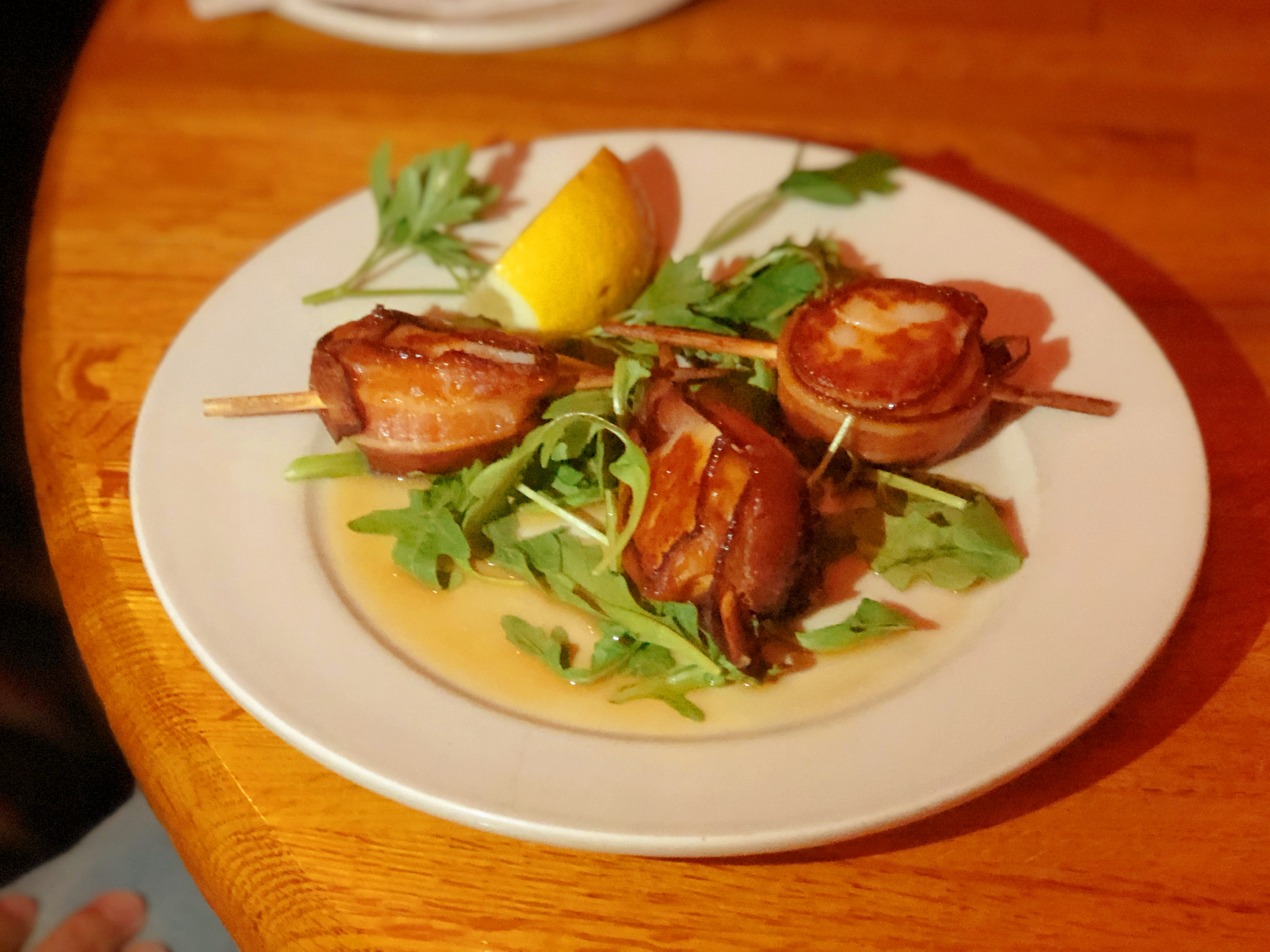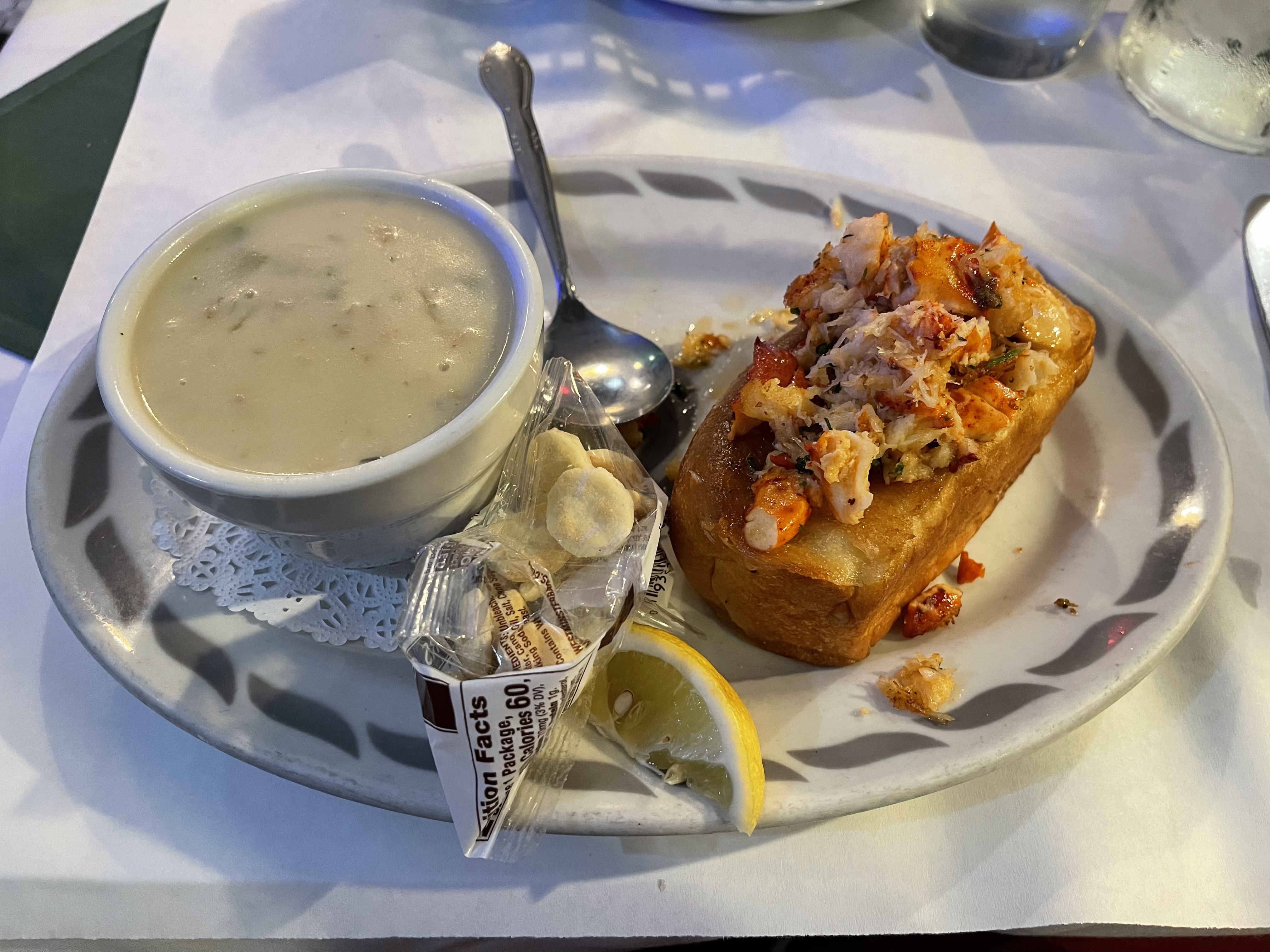 放下行李之后去Bar Harbor Downtown吃饭,当年年少无知不知道出NP吃饭 第一天去了Galyn’s,前菜就是平平无奇的培根卷scallop,Clam Chowder好喝(这个还是要New England地区做得好,西雅图那家名气那么大还要排队吃到第一口就想骂人),龙虾套餐是好吃的但是肯定没有岛外划算毕竟旅游区, 龙虾卷嘛,只能说没有对比就没有伤害,面包就是平平无奇的超市里能买到的面包直接拿来用,总之能吃但不推荐就是了