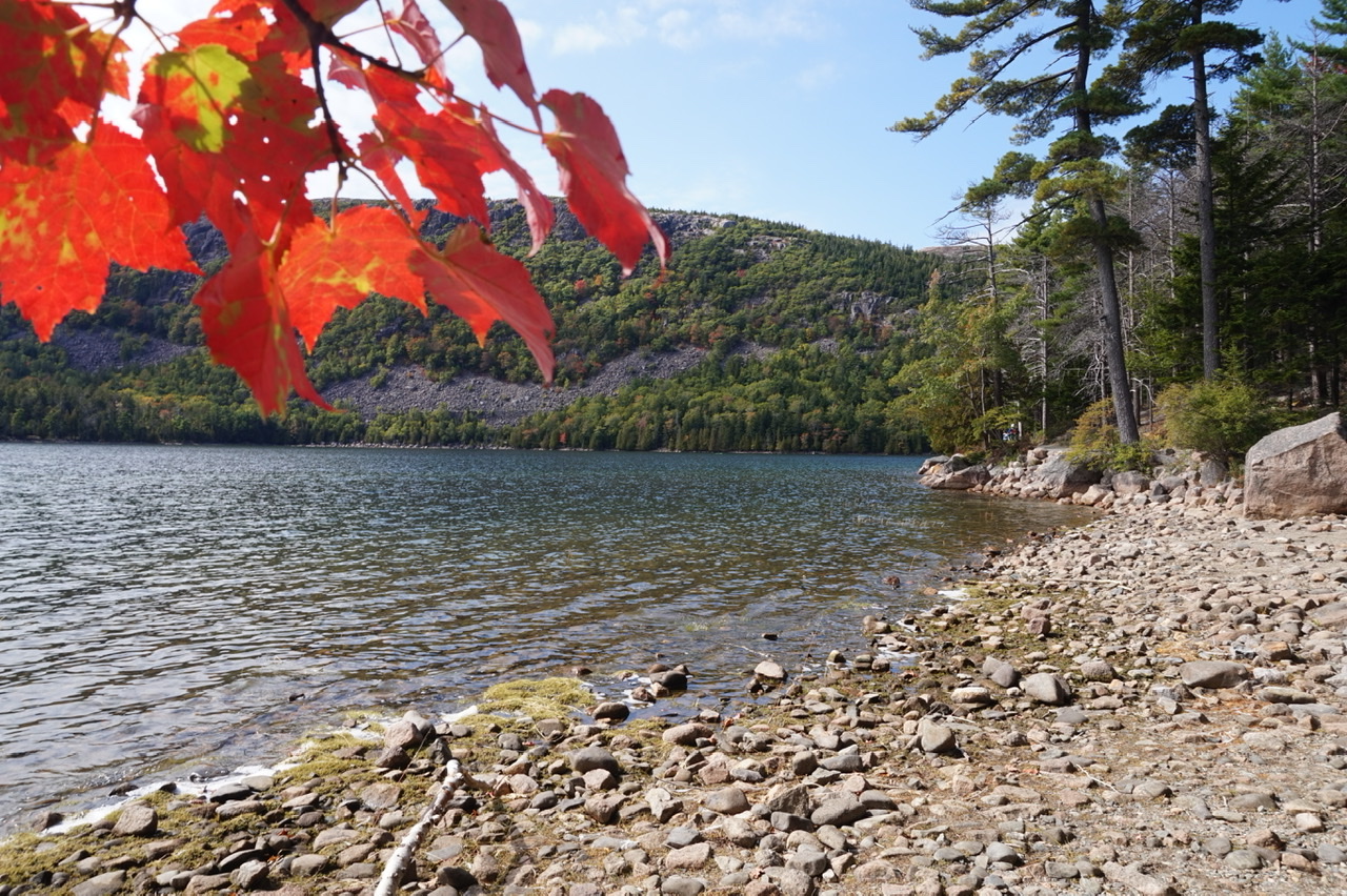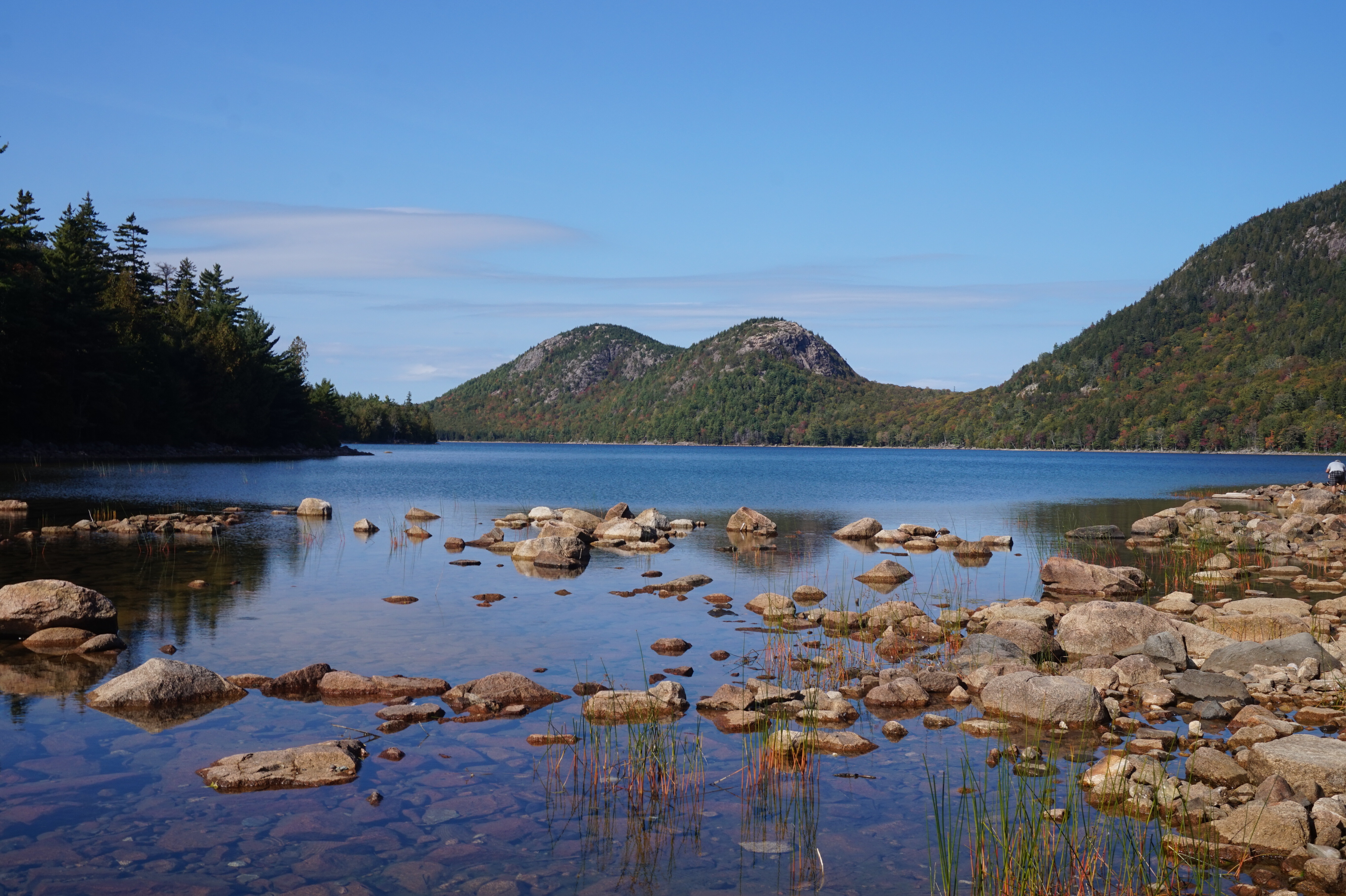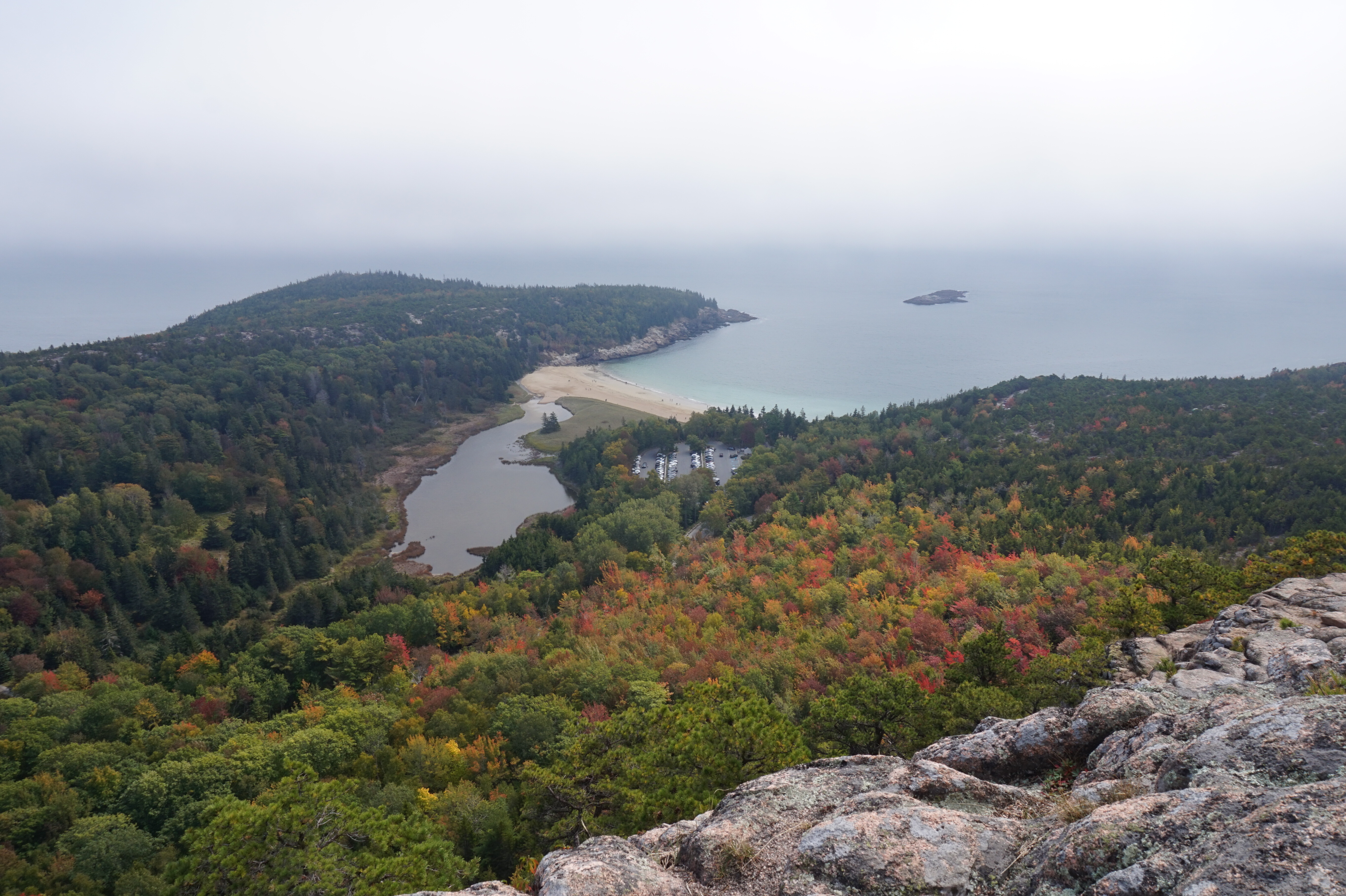 白天先去了Bubbles Divide Trail看Bubble Rock,这条Trail难度为0,可以一直走到Jordan Pond旁边,老少皆宜。9月中下旬树叶还是只红了一点,10月去应该最好