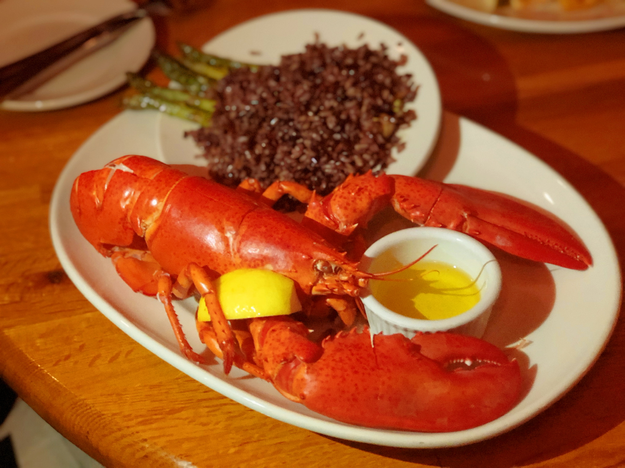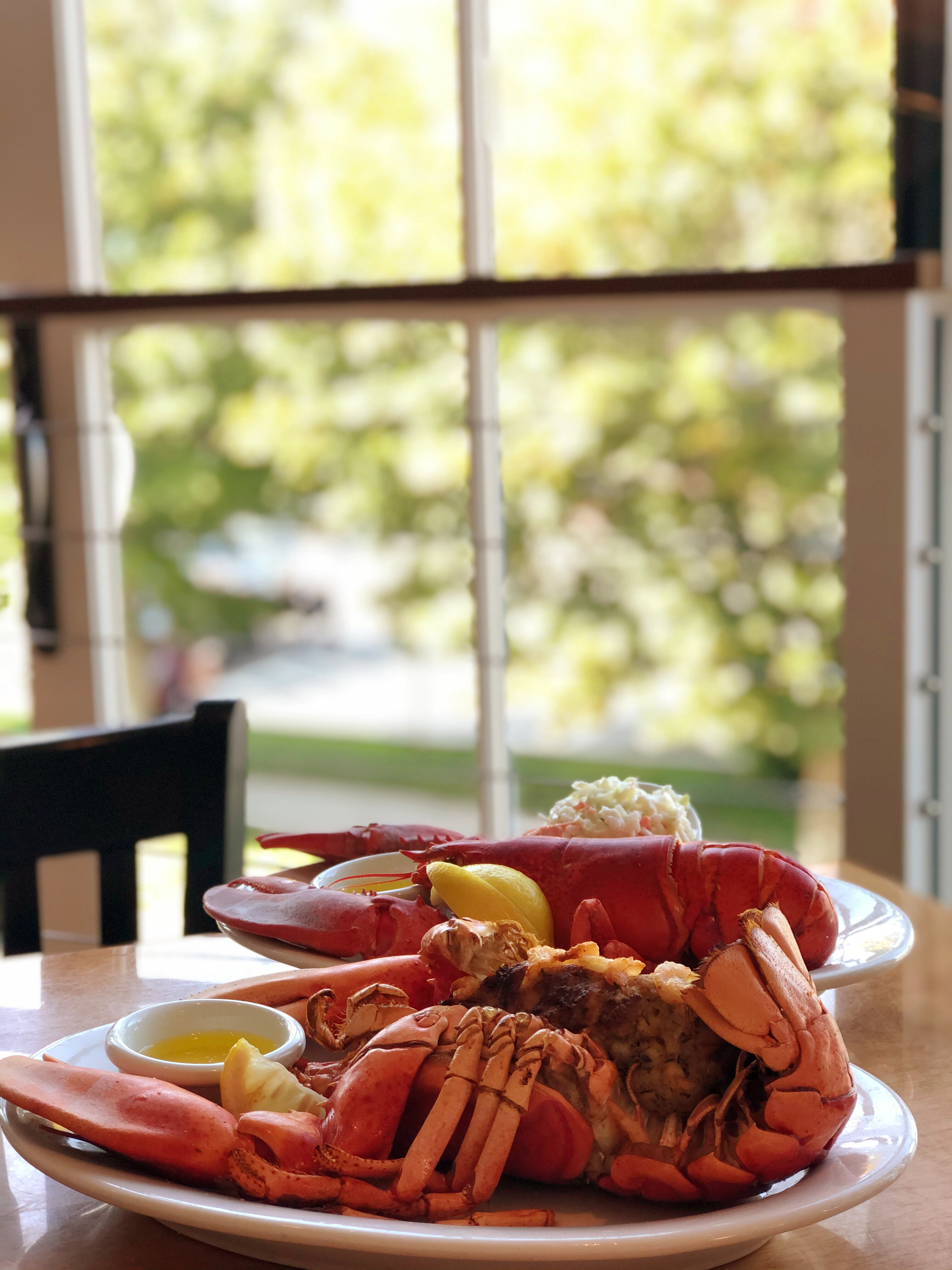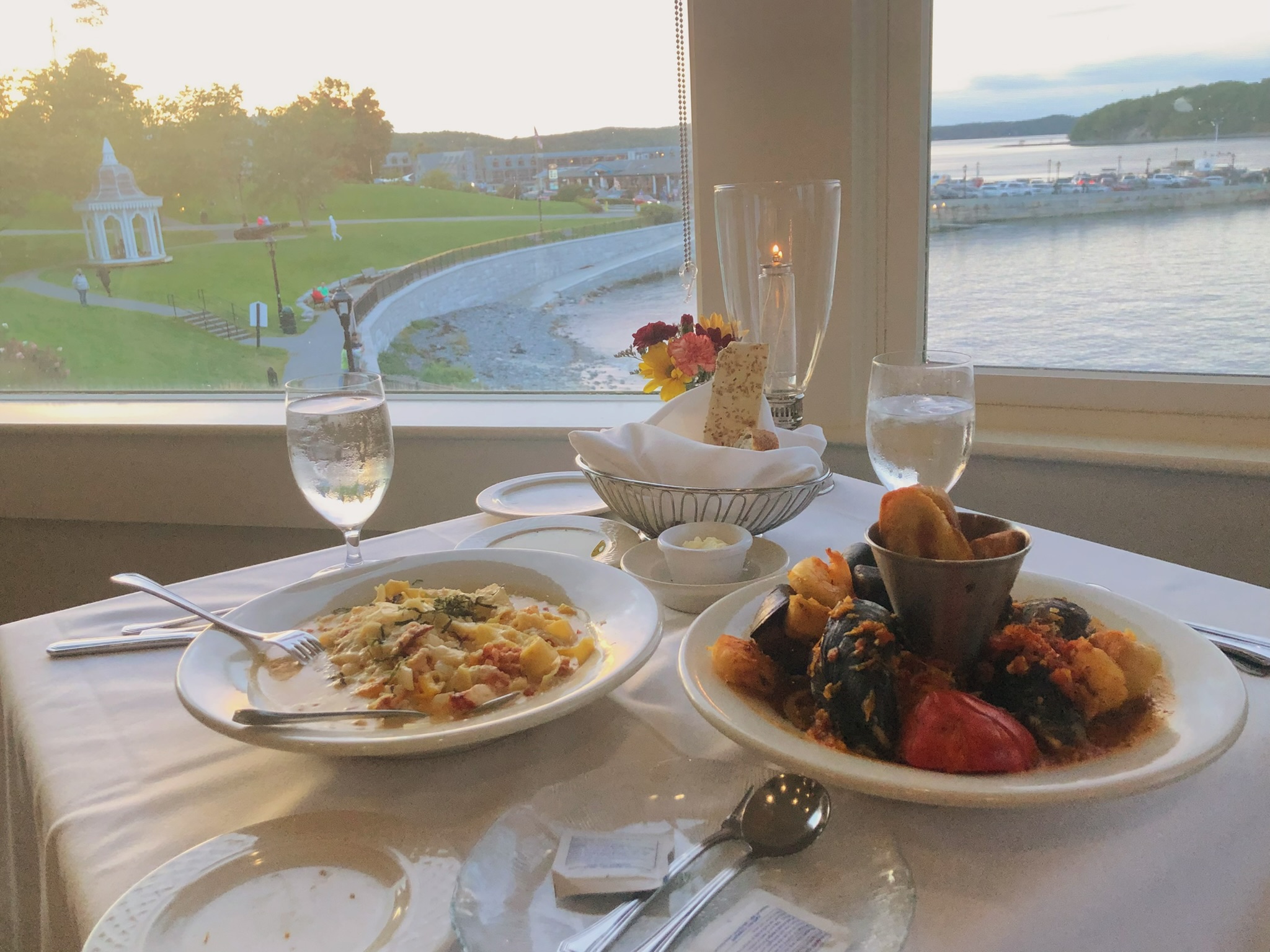 应该是Bar Harbor镇上相对比较fancy的餐厅了(aka吃不起的餐厅),装潢挺老派的,位置就在海边,可以看到橘黄色帆船和夕阳,菜色还不错但是不惊艳