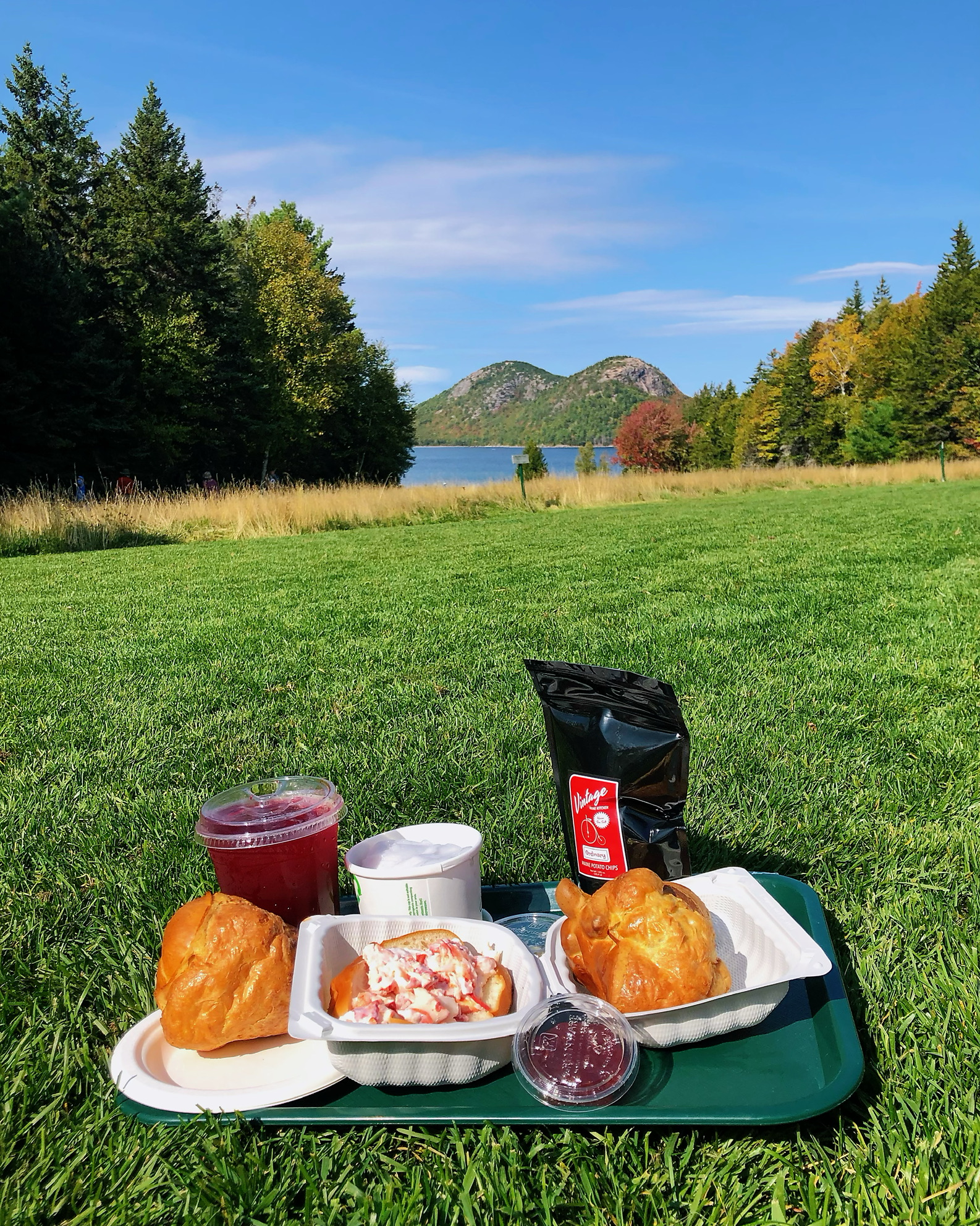因为早上吃了早饭所以中午挺晚才到Jordan Pond House吃午饭,疫情期间只提供外带,不过天气好的时候非常适合picnic