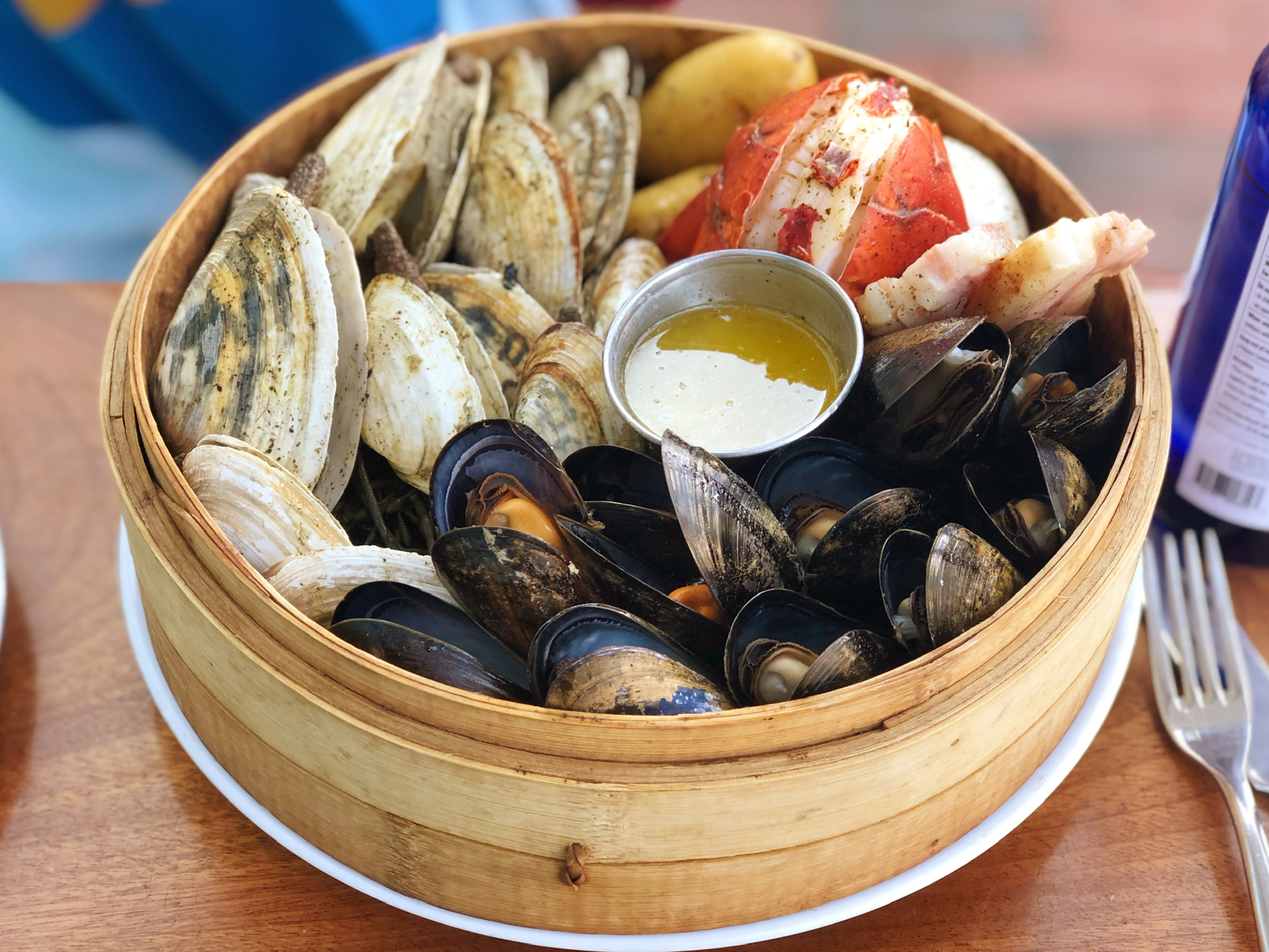 最后就是离谱的痛风套餐了,里面有龙虾尾,青口aka淡菜aka海虹,象拔蚌,土豆,白煮蛋,和咸五花肉,真的就是江浙地区和笋放一起烧那种咸肉一口吃哭了