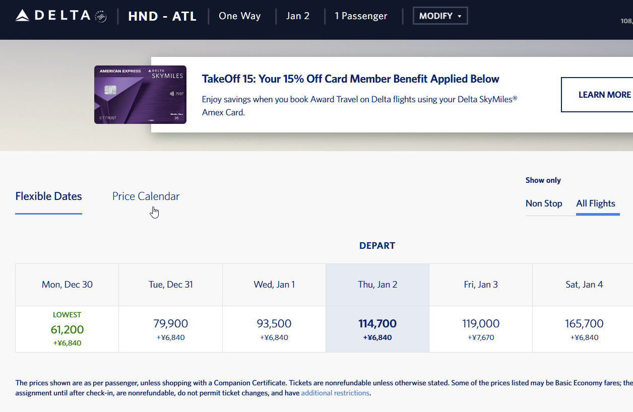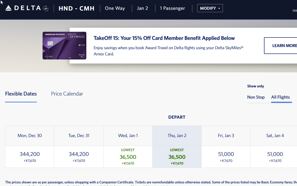 现金/里程(多少CPP):36k Delta Miles