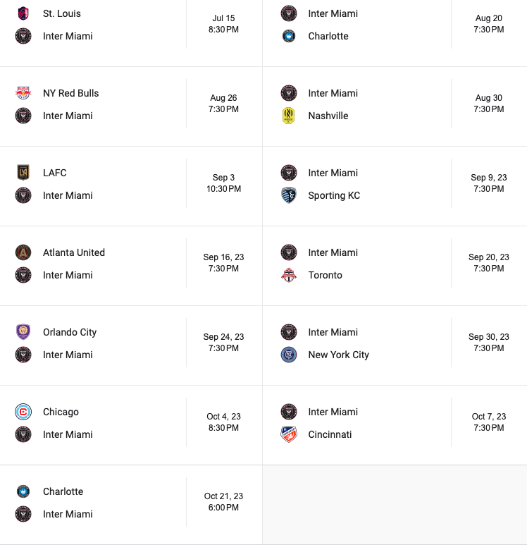 顺便科普一下,MLS不是像主流联赛那样踢双循环赛制,所以有些西区球队是不会有机会在主场踢Inter Miami的