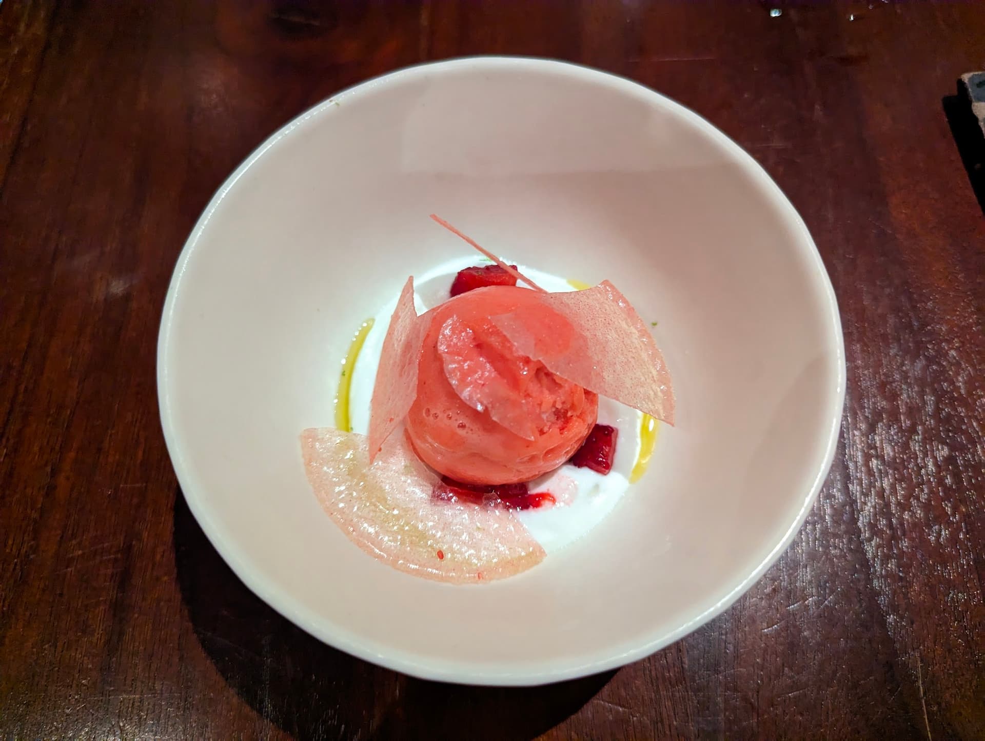 Strawberry Sorbet, Greek Yogurt Sauce,yogurt sauce比想象中更好的balance了sorbet的甜酸,很爽口