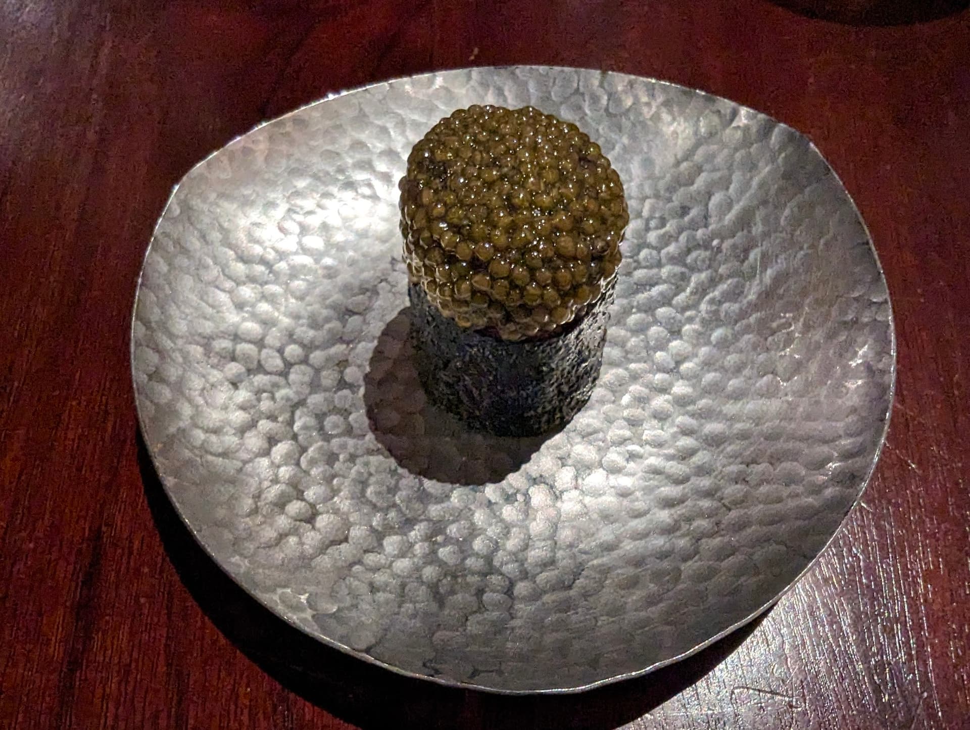 招牌菜Caviar Kim,有点像handroll,中间有marinated beef,avocado,truffle rice
