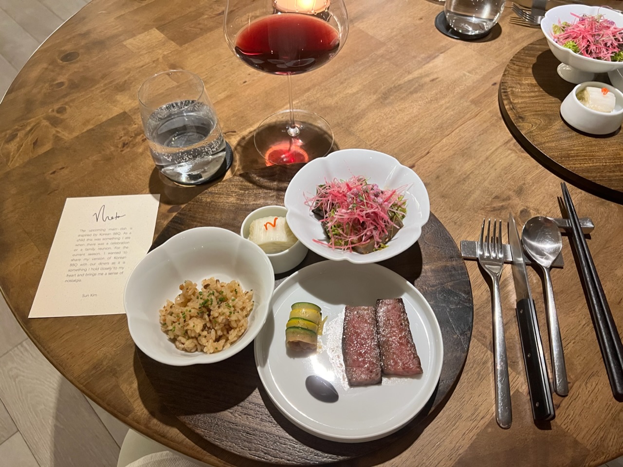 主菜是a5和牛bibimbap 还可以吧 他家甜点师傅挺厉害 很有新意