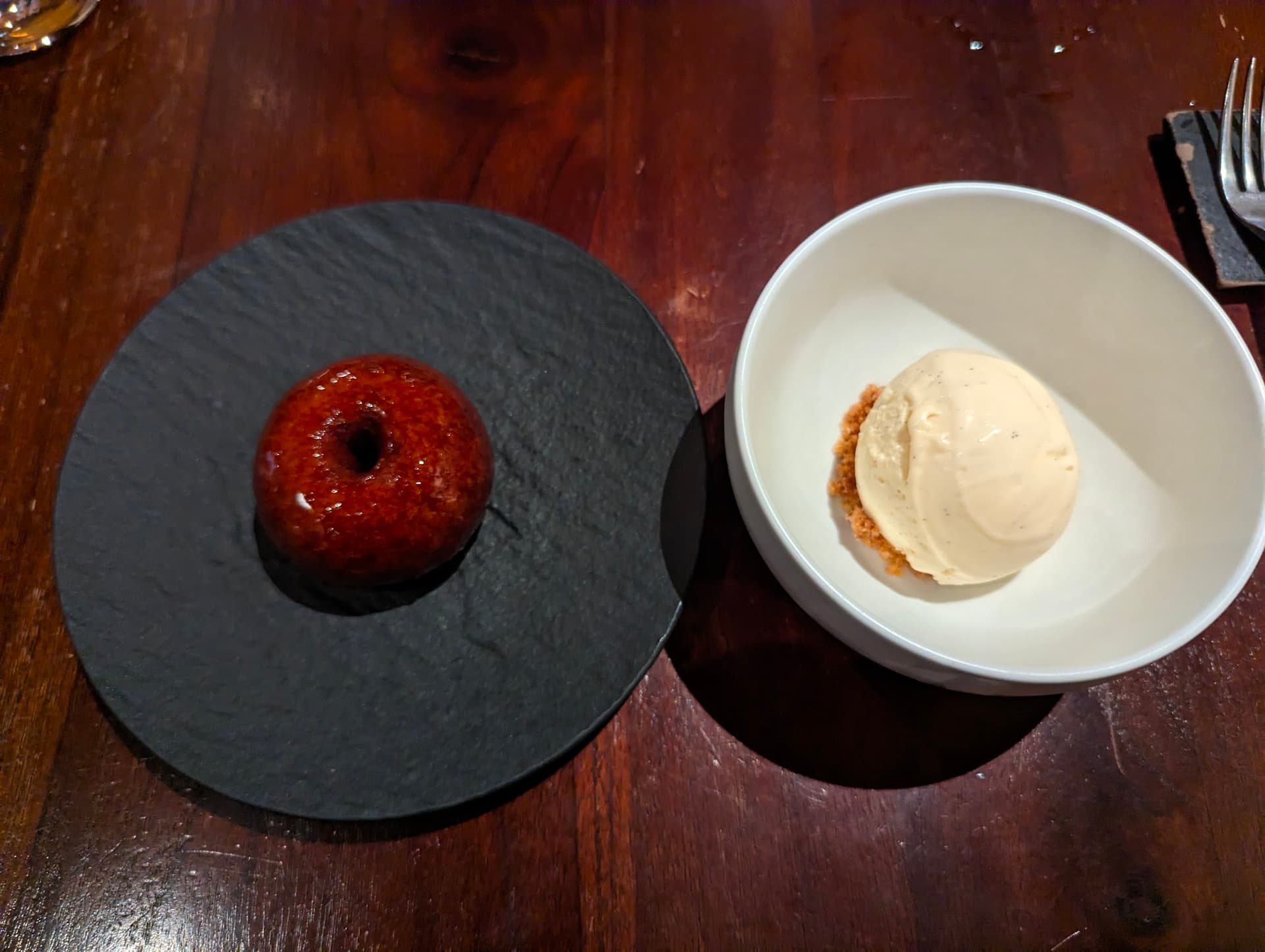 Goguma Juak,红薯donut + brown butter ice cream,这两个也是搭配起来很好吃,donut主要是面面的,有淡淡的红薯甜味,brown butter ice cream吃起来就很luxurious了,丝滑