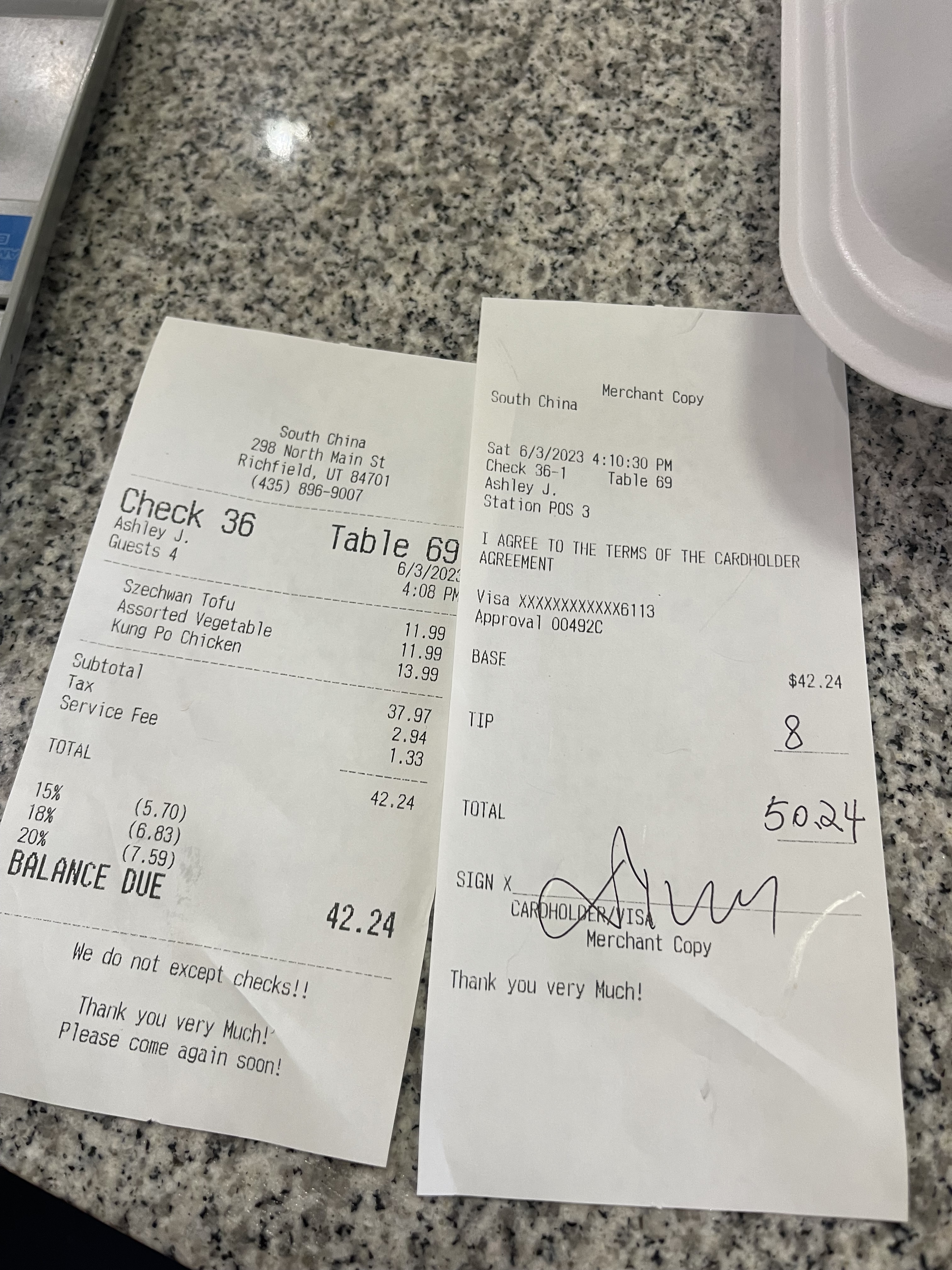 我也會核對,收據都留著之後核對正確才丟掉,而且小費和總和數字前面還會加個$