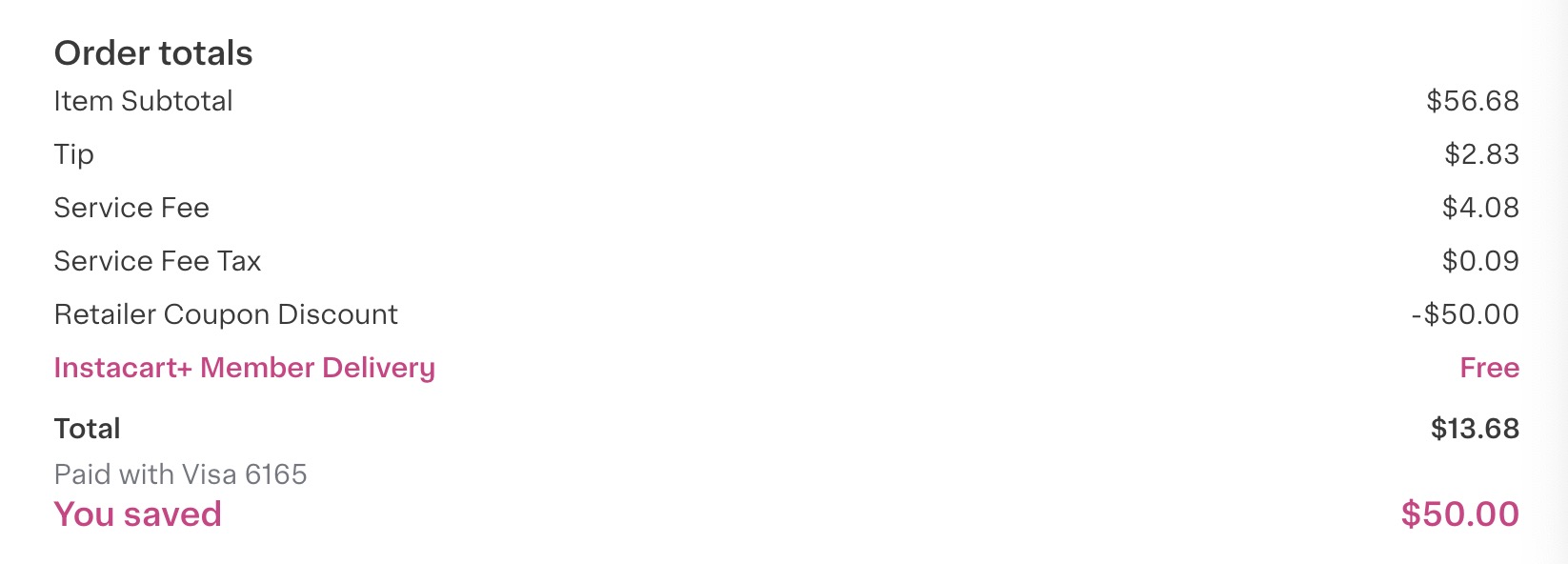 没。 instacart会多收你钱 跟配送员无关。 加卡号 mark up 从 30% 降到10%. 我记得是