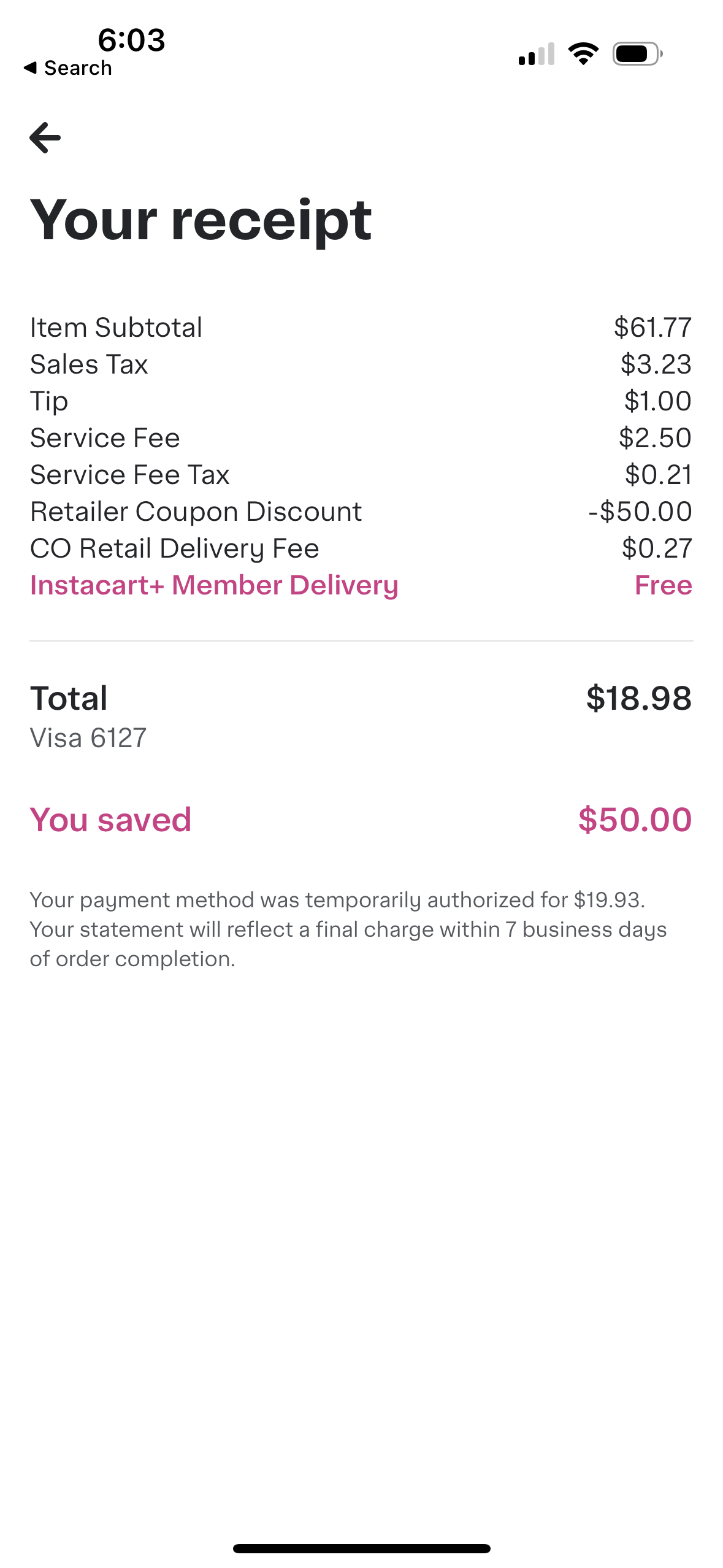 看这【薅羊毛】Instacart offer 新用户 55-50 - #210,来自 swl007007, 每天都在学习新知识 ![]()