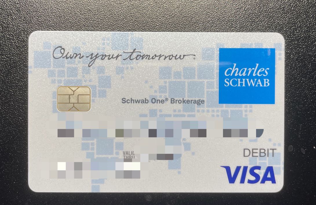 新开的Schwab One Brokerage账号,选了要debit card,寄过来的长下面这样
