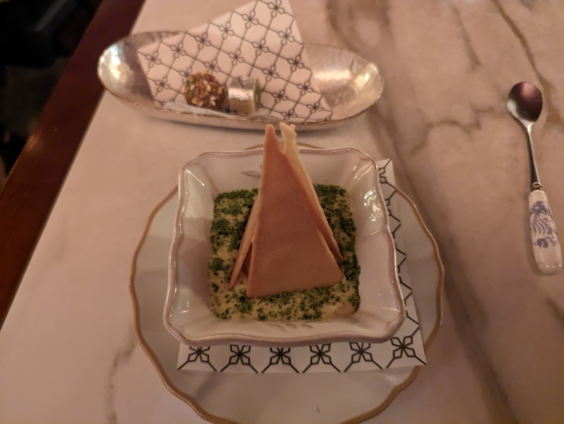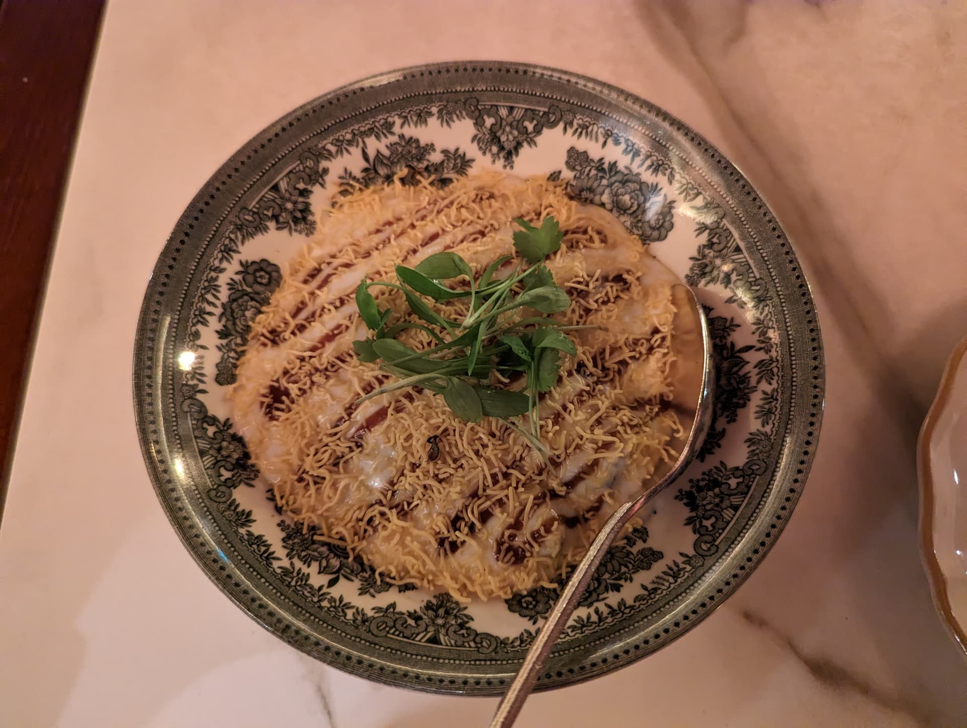 tasting menu选的是Aloo Chaat,炸土豆,上面yogurt和醋sauce