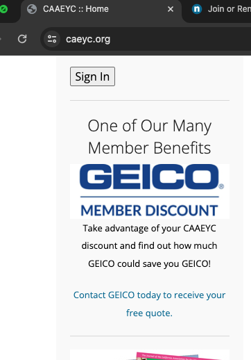PS: CAEYC官网上也宣传了买他们的membership可以拿到geico的优惠。souce: https://caeyc.org/。