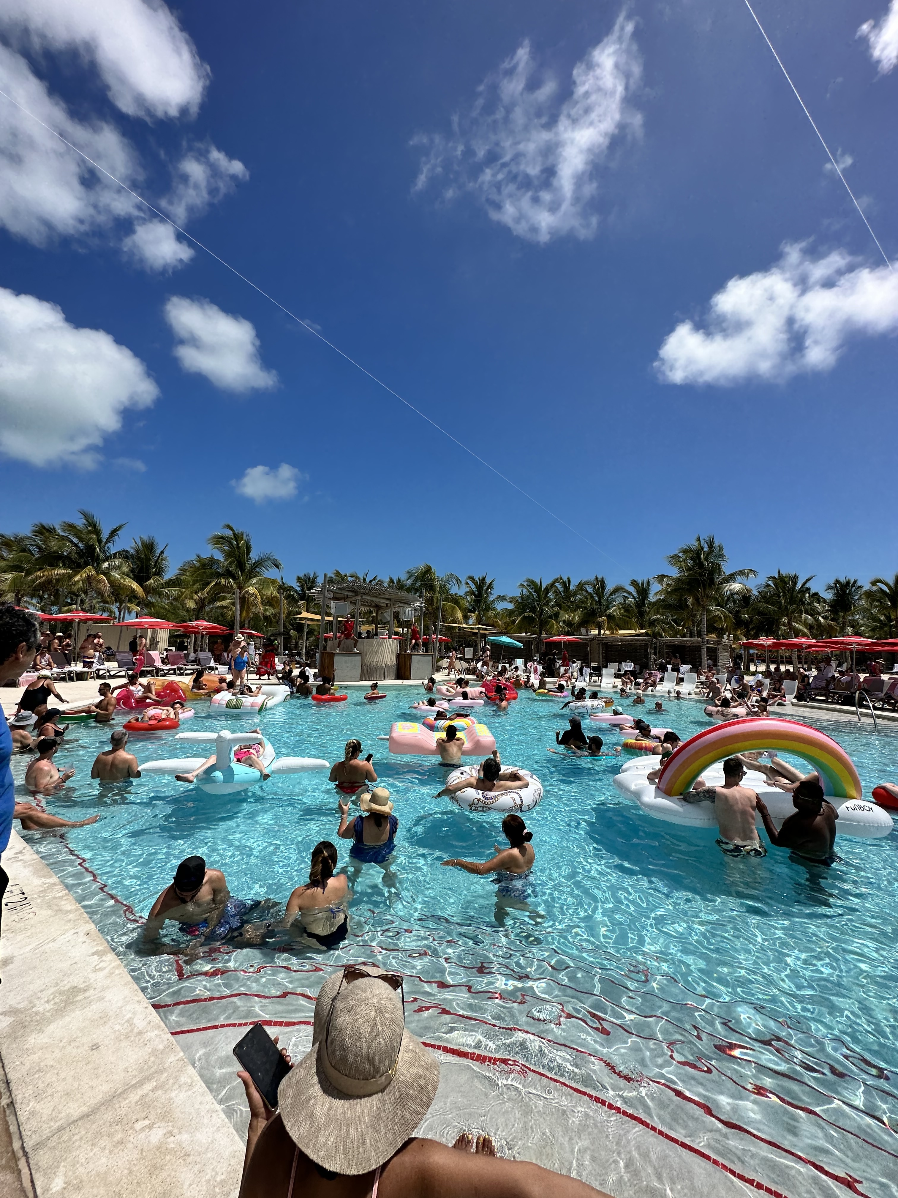 其实人不多,只是拍的时候正是Pool Party的时候所以大部分人都在离舞台比较近的那个Pool,想清净可以往沙滩走,而且没有额外价格。。。Beach Chairs, day beds, umbrellas, food, soft drink all inclusive