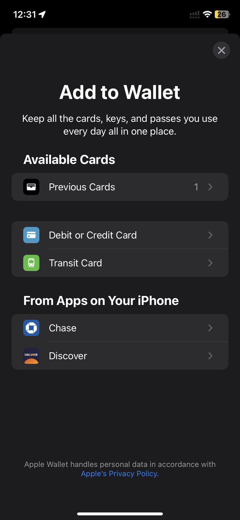 从我的Apple card批准邮件,点击确认会跳转到钱包,这是钱包的三个界面,没看到任何能加卡的地方