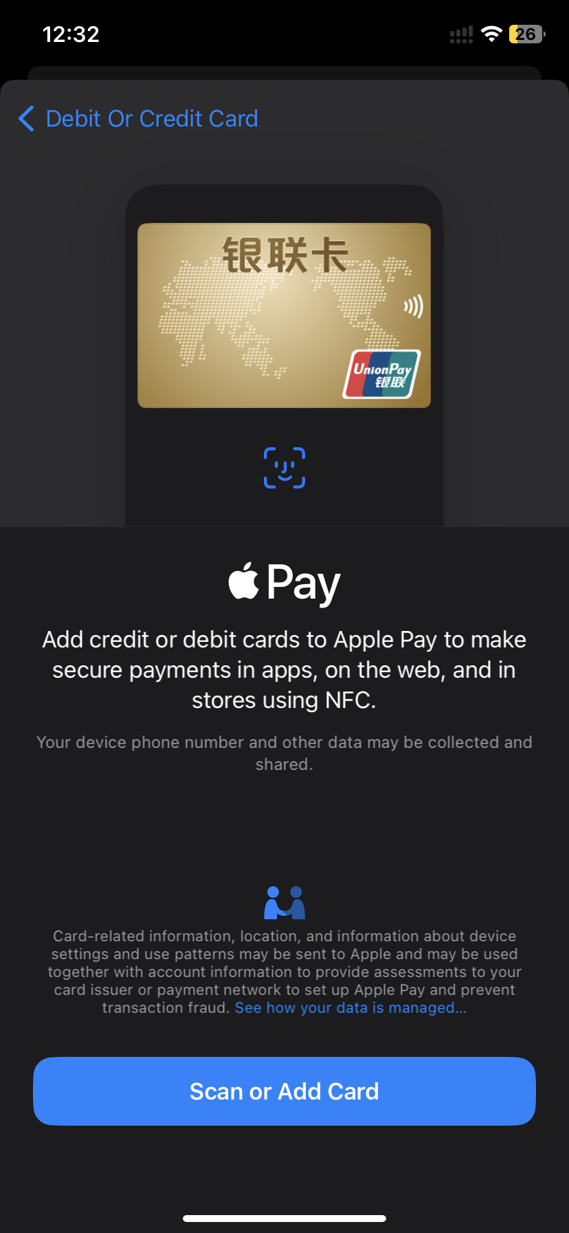 想存apple saving的4.15以及十分喜欢apple实体卡,所以申请了apple card。现在申请通过但是我还没接受offer,看到实体卡需要加卡到apple watch才可以,但是我点击我手机的钱包根本就转不到apple card页面,因为手机是国行,所以全都是银联和国内的银行,想问下这种情况如何加卡到apple钱包然后request实体卡呢?