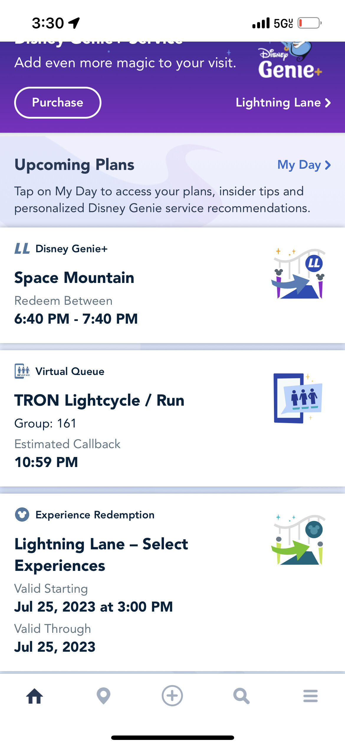 Disney App管理Genie+预约不要太方便 可以先占位然后疯狂modify时间,比如太空山我就从6:40-7:40一路改到了8:40-9:40