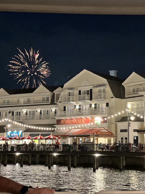 一直到快9pm我们才出门,在船上看了一大半烟花(Epcot周一的烟花貌似没有周六的时间长),入园了之后确实看到很多人在出园,还以为尊贵的酒店贵宾slay全场的时刻要到了!结果一看…Test Track 30min,Remys 35min,Soaring都还要30min…人傻了,因为当时护卫队还没叫到号,我们只好先去了旁边的Test Track排队,结果又遇到delay,最后竟然排了将近40分钟才结束;然后匆匆赶往护卫队被告知要排一个小时…(比我们下午去的时候人还多!!)不过经过一系列骚操作最后我们大概不到40分钟就排完结束了,11:15pm左右出园,我坐的船姐妹走的路,基本差不多都11:30不到就回到宾馆了,今天这一天虽然看起来很悠闲但也太费脚了