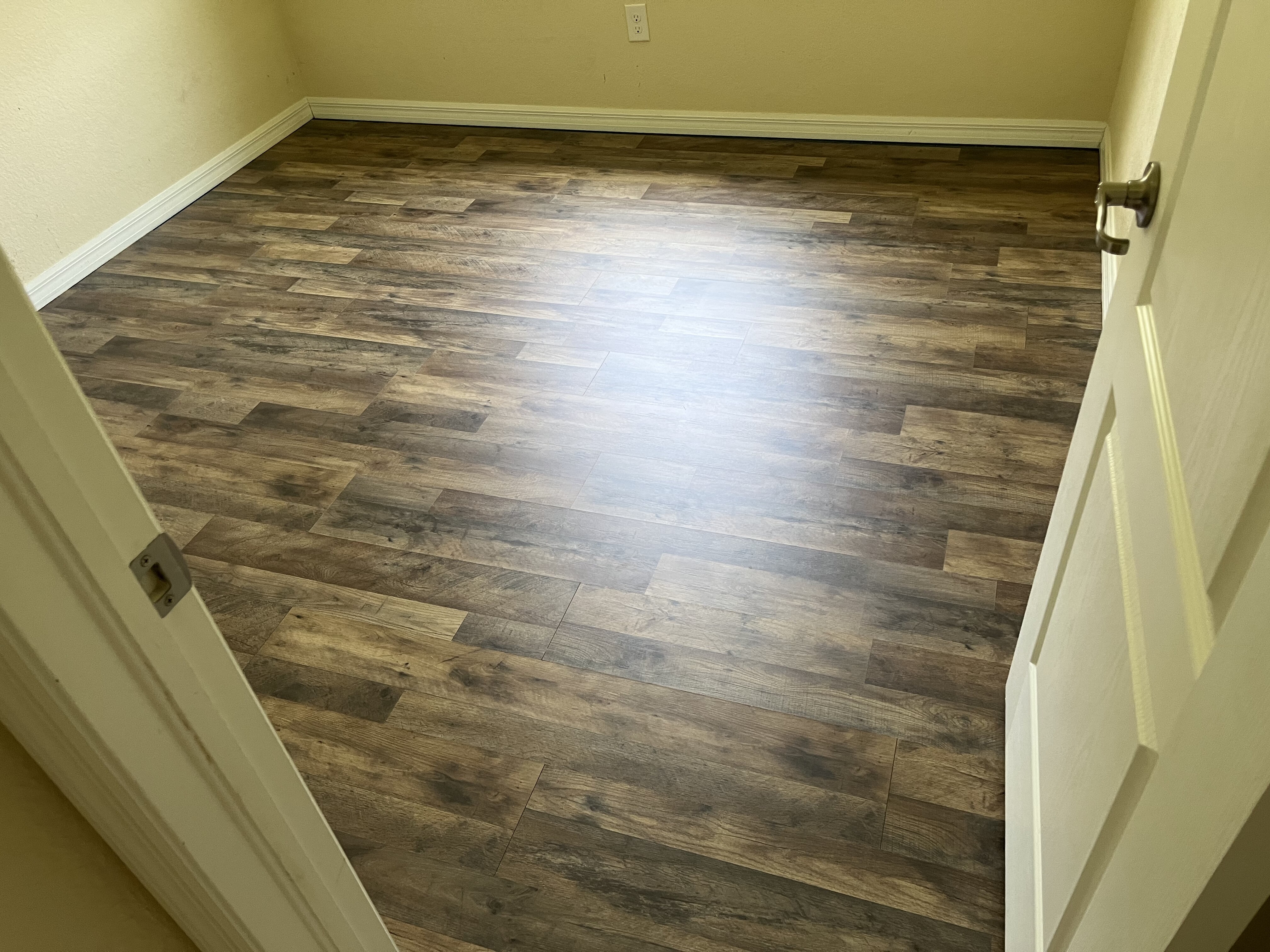 楼主这地板是自家用还是出租房的啊,现在蛮多新房都是用浅色系的宽地板,可能是这几年流行,我个人觉得比这种深色相对窄的板子好看一些
