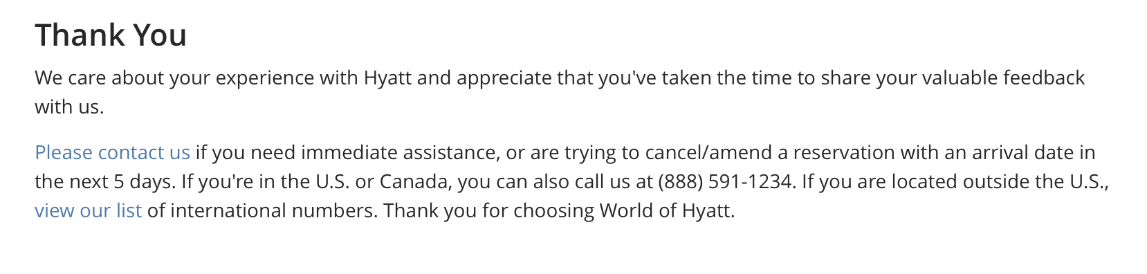 I greatly appreciate you responding to my feedback. It is reassuring to know that Hyatt Hotels holds its service quality to the highest standards and takes such incidents seriously.