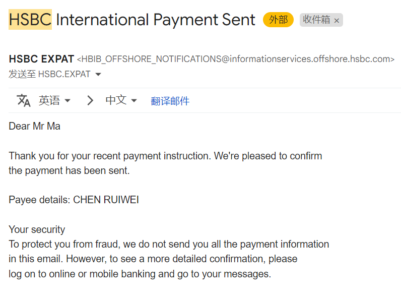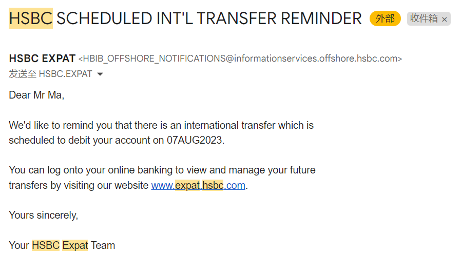 发件人都是“offshore.hsbc.com”,看起来也不是诈骗邮件。