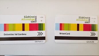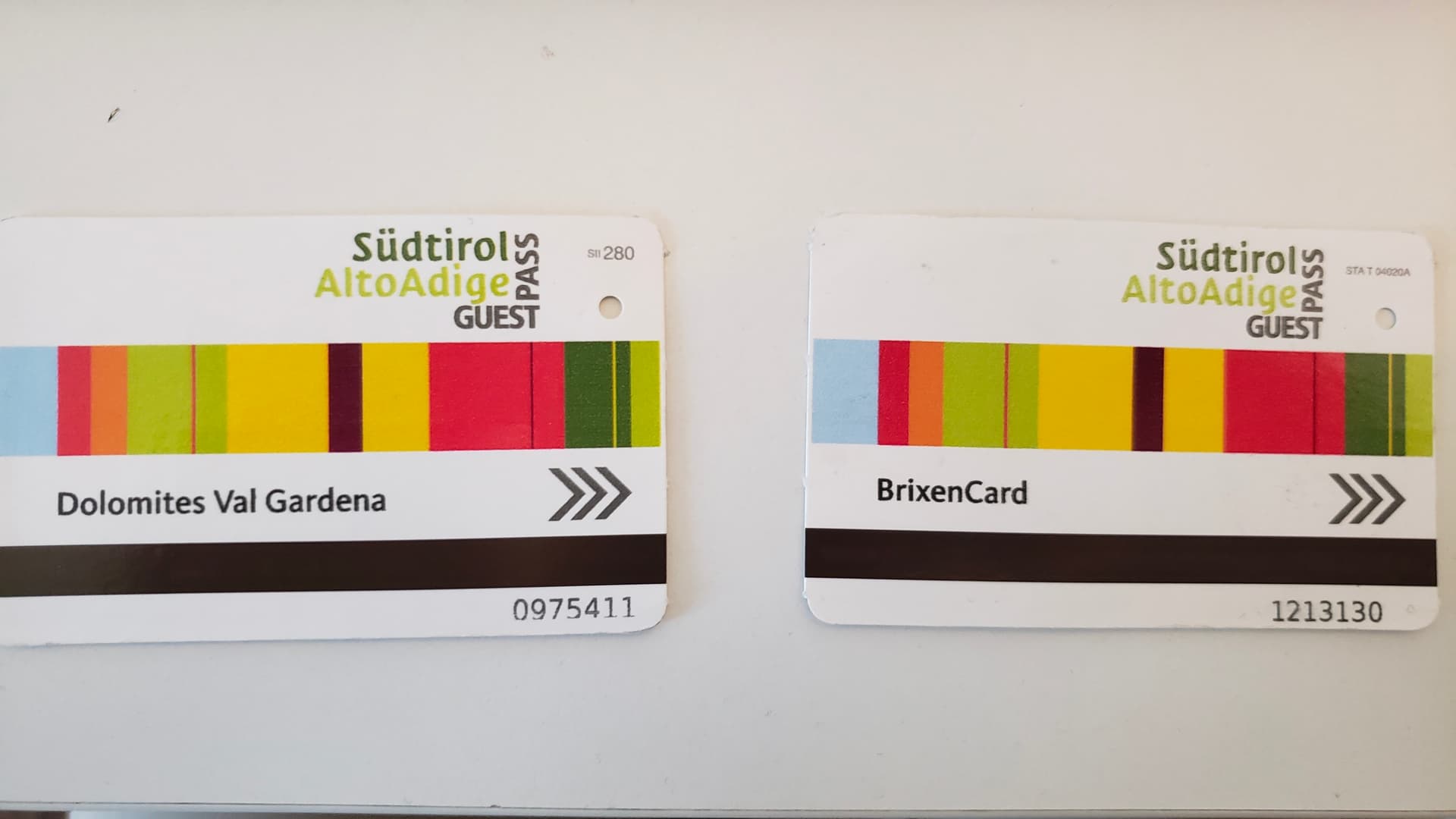 左边是Ortisei酒店发放的加尔代纳山谷游客卡,右边是Brixen酒店发放的游客卡