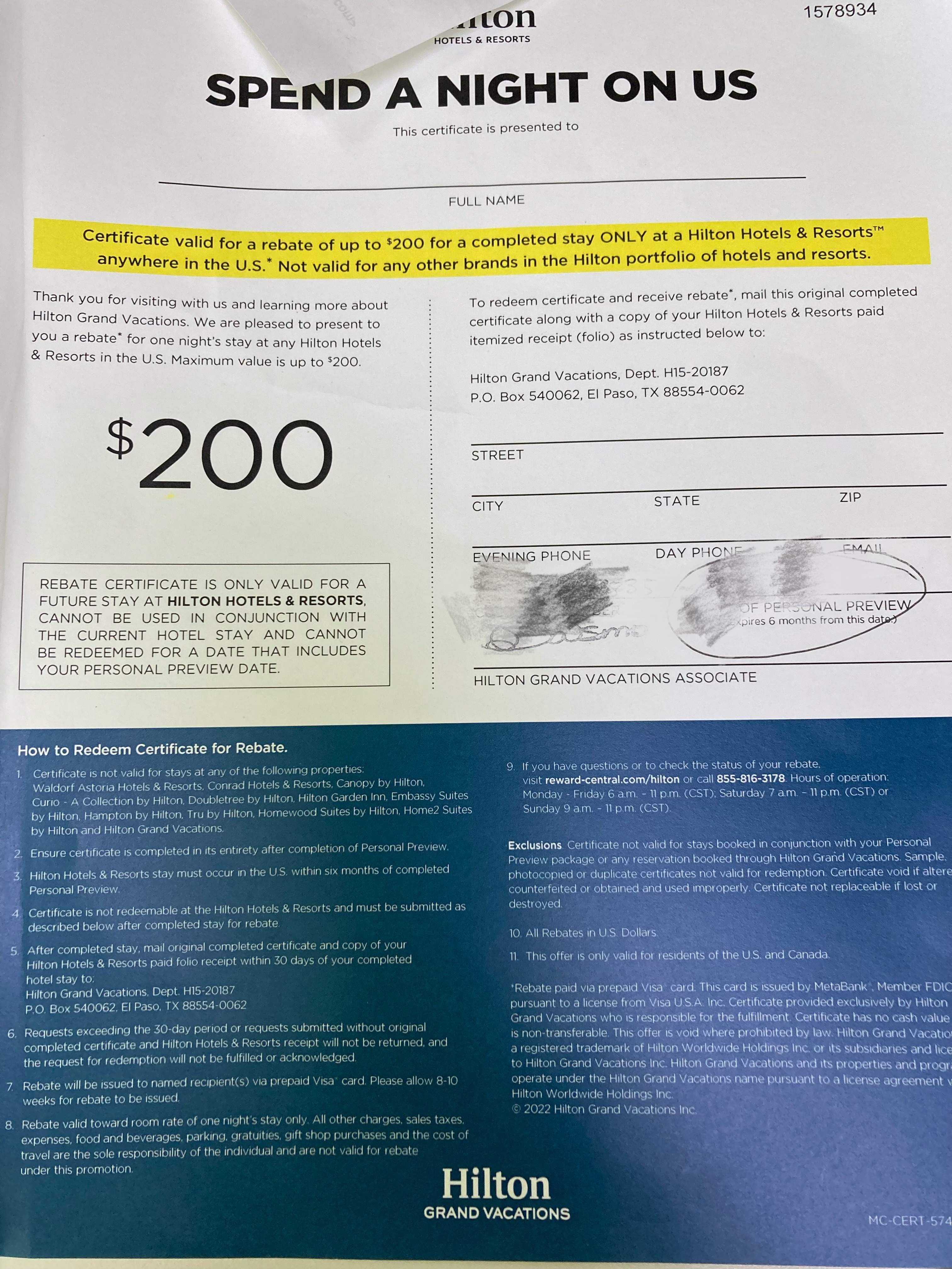 我今天收到了一一张两百的hilton, 是不是只要是hilton 就行,不管是不是resorts ?