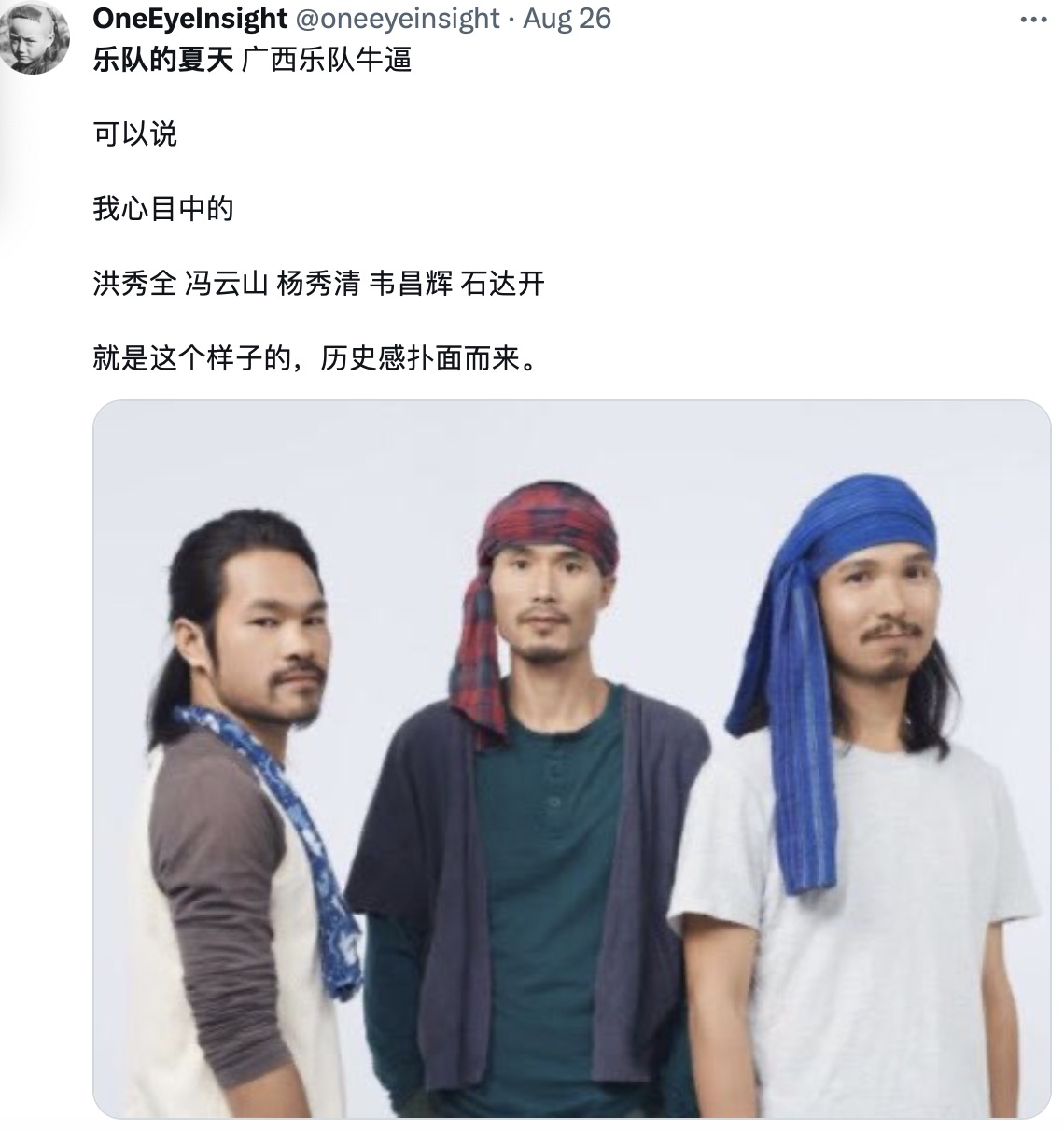 话说,他们这属于世界音乐,无论歌域和乐器的多样性,和摇滚乐队pk 是不合适的,对双方都不太公平.