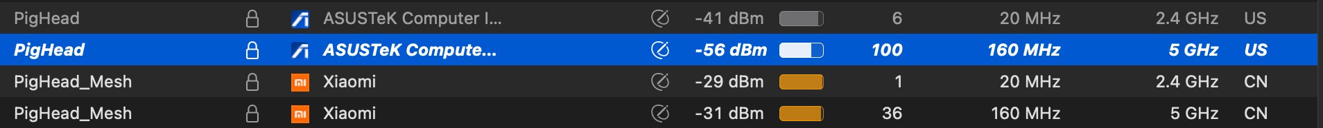 6-10天,关闭 AX6000,重启 Asus 的 Wi-Fi 功能,信号有明显的衰减,在同样的测试位置, 2.4G 在测试位置是 -41 dBM,5G 信号是 -57 dBM,家里再无设备断网。