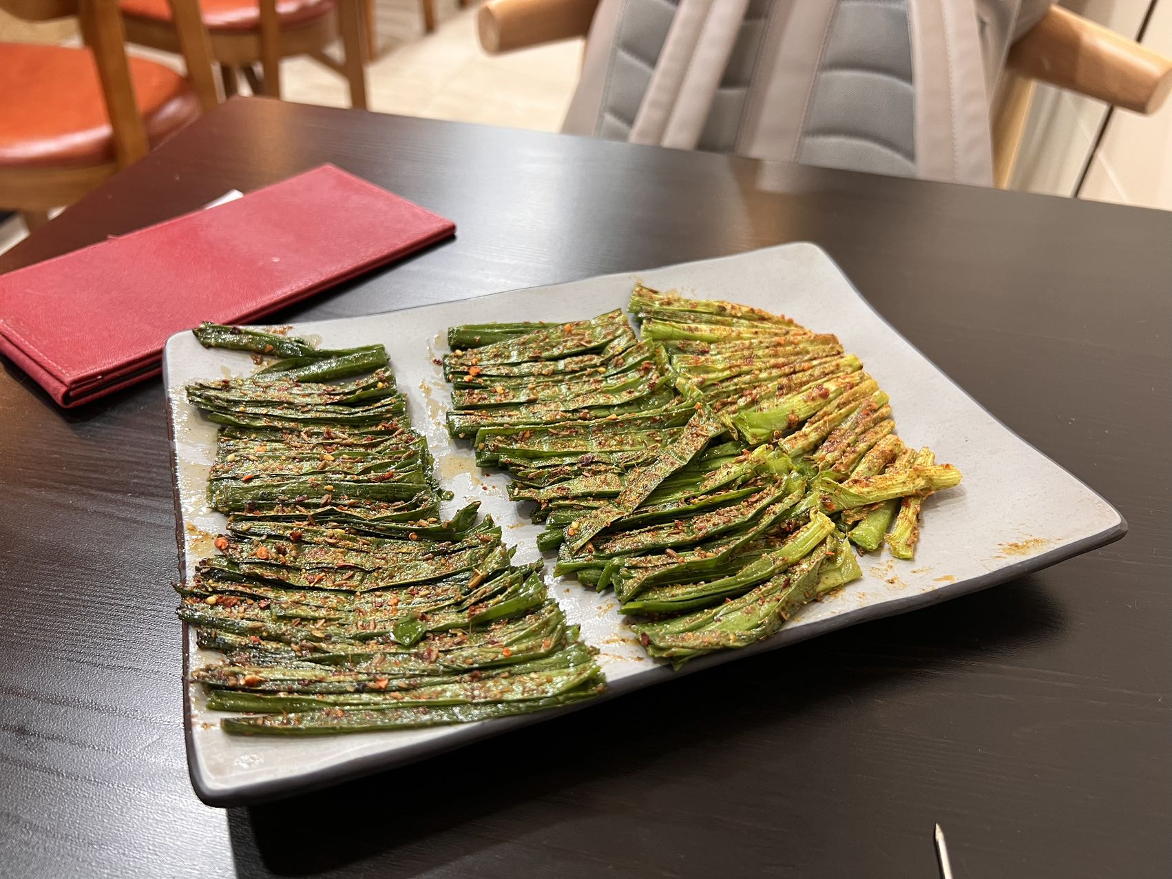 这里最多的是川菜和东北烧烤。当天是周二还是人多的坐不下。我好不容易找到一家不排队的烧烤店。只点了牛羊肉各5串,一盘韭菜。都是纯正中餐馆,很地道的。没有小费,一共花了18新元。