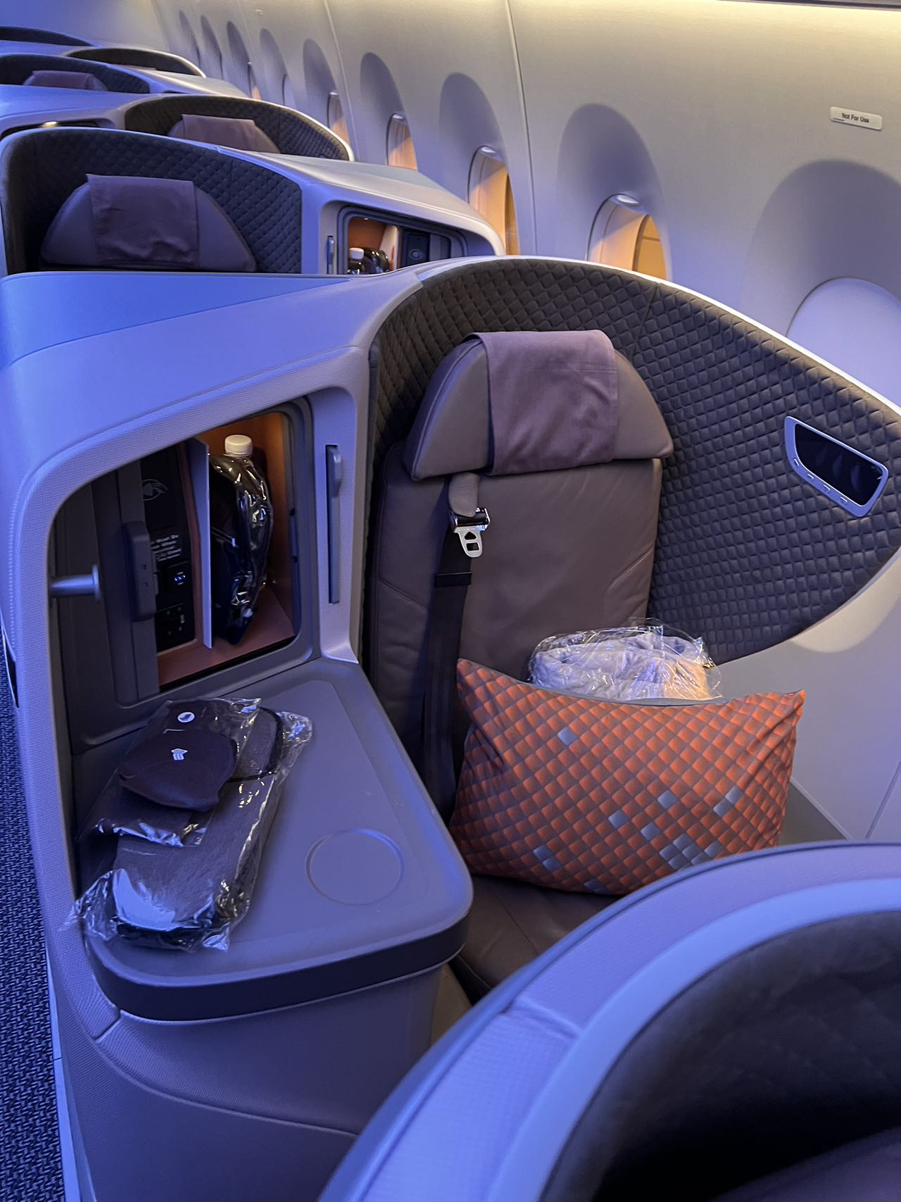 登机后发现同为A350,商务舱居然还不是一个产品。这款应该是Stelia Solstys III。引用自抛因特达人。