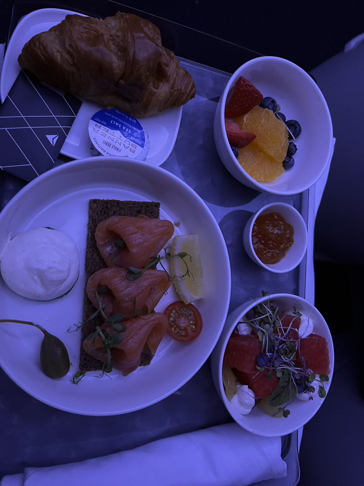 吃的也很差【但是比美联航的UA806强多了】。我提前点的烟熏三文鱼。