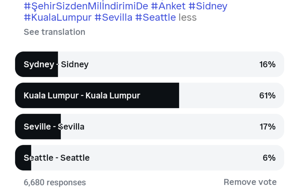 投票结果出来了,这个月的打折城市是 吉隆坡 KUL