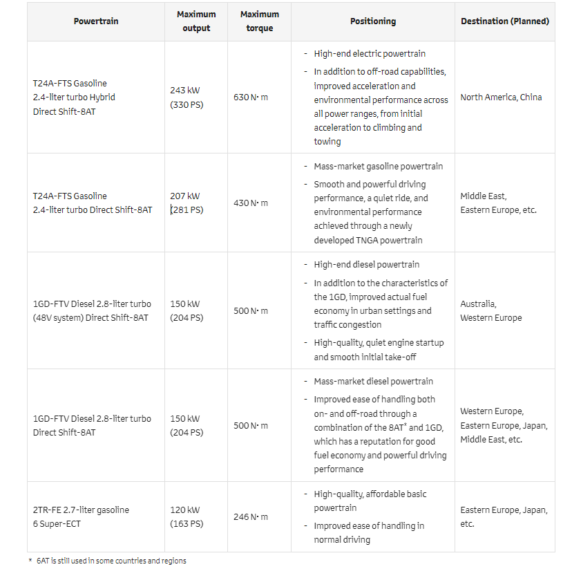 2.4L-4.5L I4/I6/V6/V8 不同年代不同的动力配置