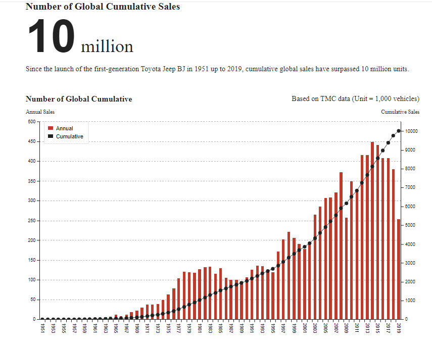 第一代叫BJ只有敞篷版,当时还不叫Land Cruiser,这是丰田推出第一款吉普车来正式进军越野车市场,这个时代最强的王者是 Willys M38