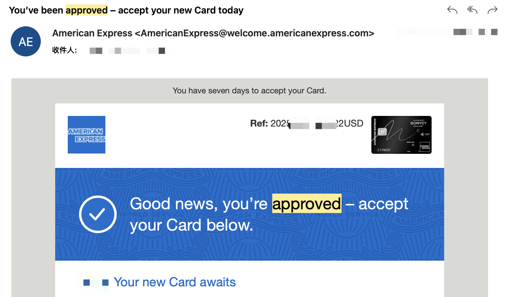 这封直接就没收到啊,我是直接申请的时候就accept了 只收到了approve邮件,没有这封accept