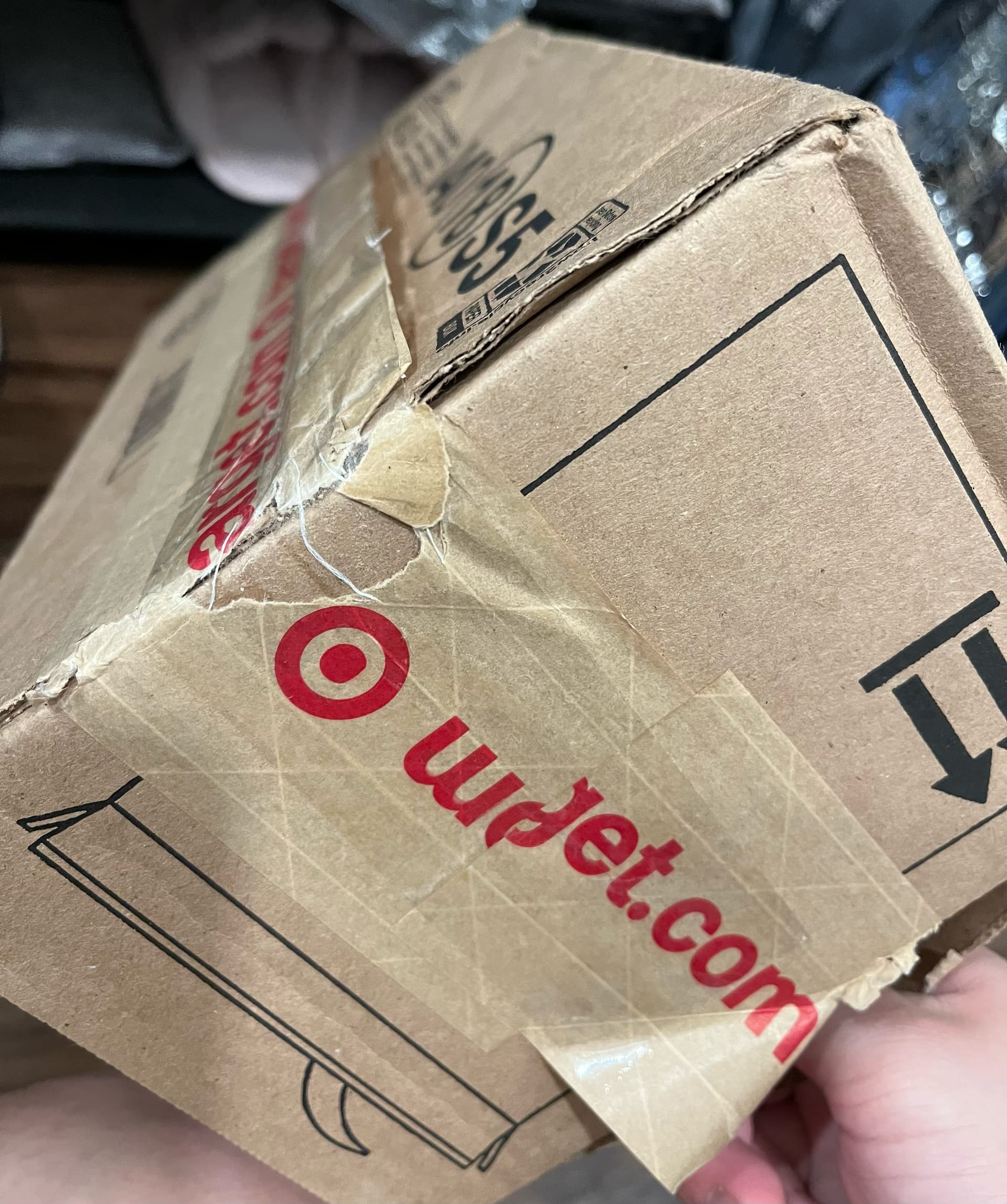 而且这个快递盒底部target的seal都被撕开了,又贴了个透明胶带上去。