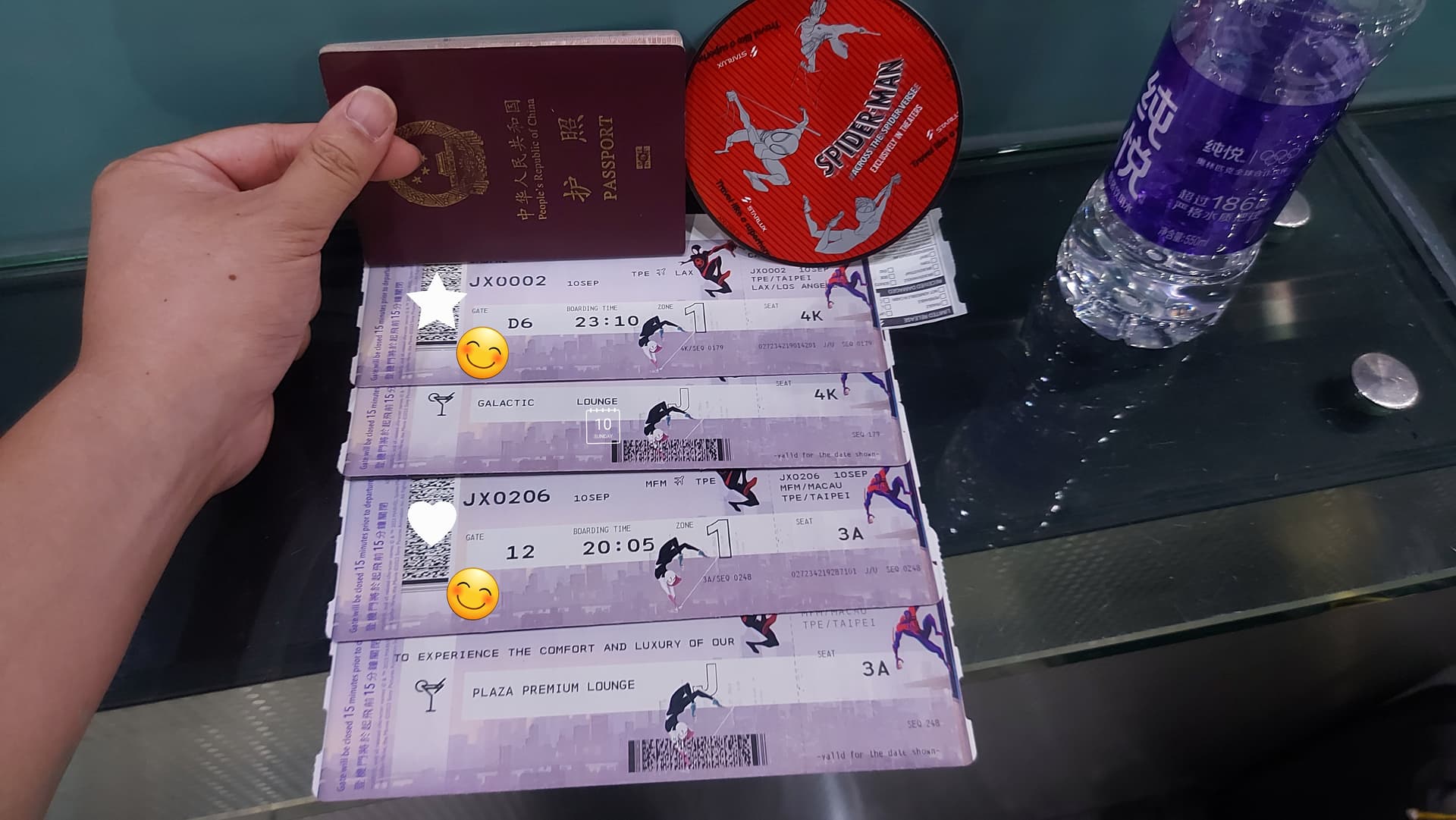 在澳门在台湾短暂转机贴不出来,在飞机上居然贴出来了