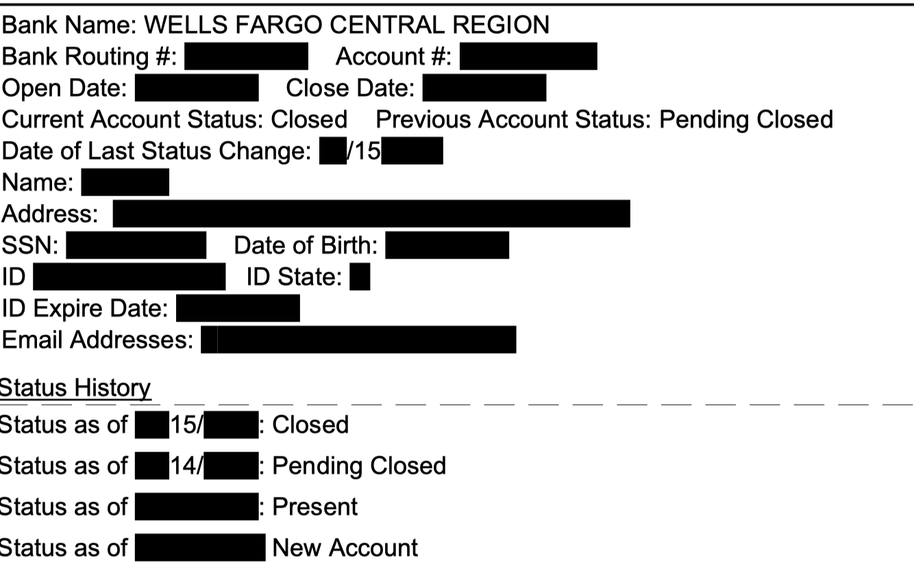 Wells Fargo会在EWS显示已关闭帐户,打电话过去关户那天是Pending Closed,第二天变成了Closed,报告里只有关户余额,无法确定平时的余额是否上报