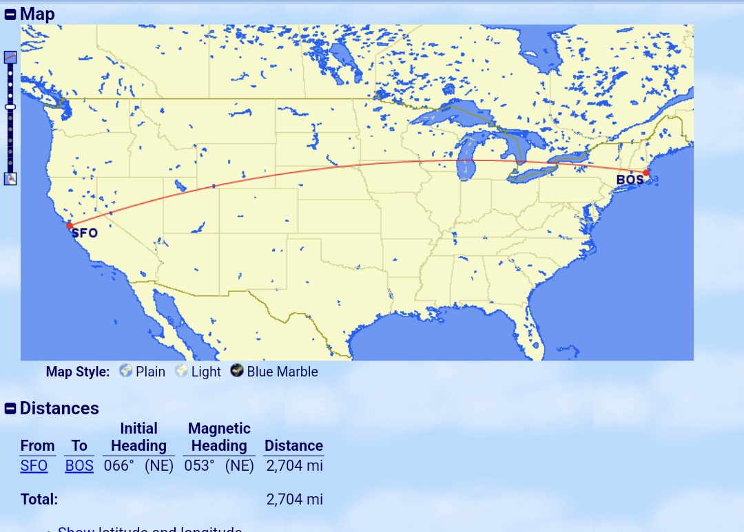 <2750英里覆盖了美国大多数transcon的距离,比如SFO-BOS是2704英里