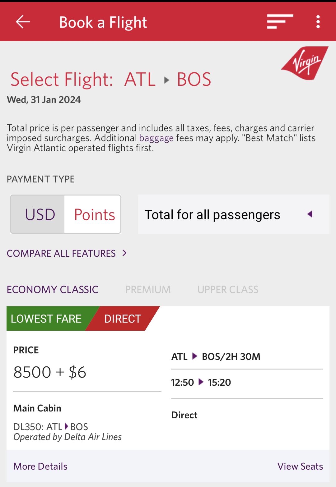 7. VS/Virgin Atlantic出Delta执飞的航班