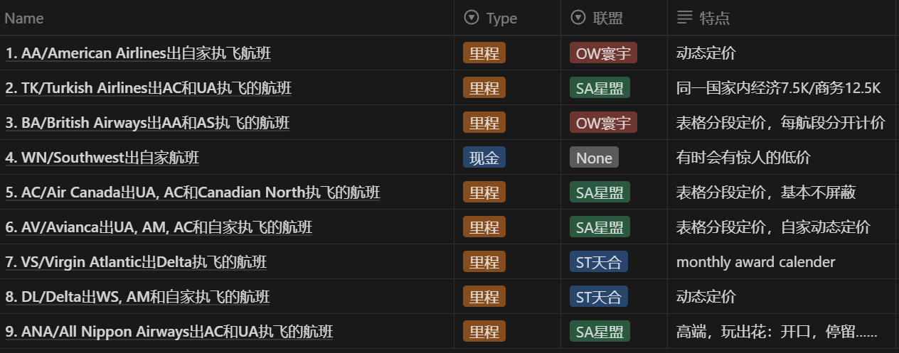 其他没上榜的名单:B6, SQ, QF, CX, UA, HA, 不被考虑。这期先到这里,有问题可以在下面提。