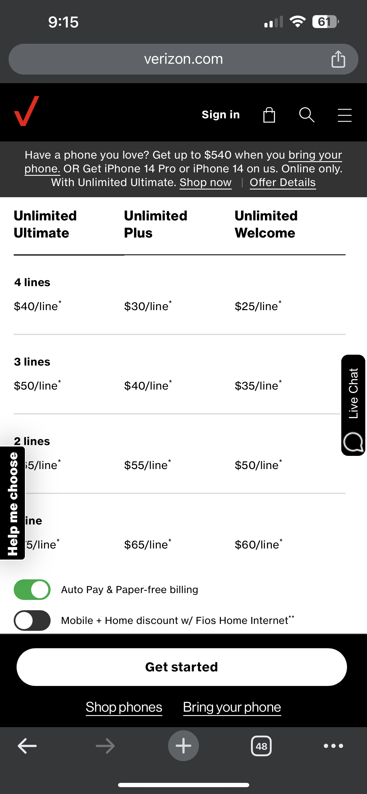 Plus taxes and fees. When you bring your own phones. Unlimited Ultimate: Plan price includes $540 BYOD promo credit per phone applied over 36 mos. when you add 1-4 new smartphone lines with your own 4G/5G smartphone. Unlimited Plus: Plan price includes $540 BYOD promo credit per phone applied over 36 mos. when you add 1-4 new smartphone lines with your own 4G/5G smartphone. Unlimited Welcome: Plan price includes $180 BYOD promo credit per phone applied over 36 mos. when you add 1-4 new smartphone lines with your own 4G/5G smartphone. All promo credits end if eligibility req’s are no longer met. Limited time offer