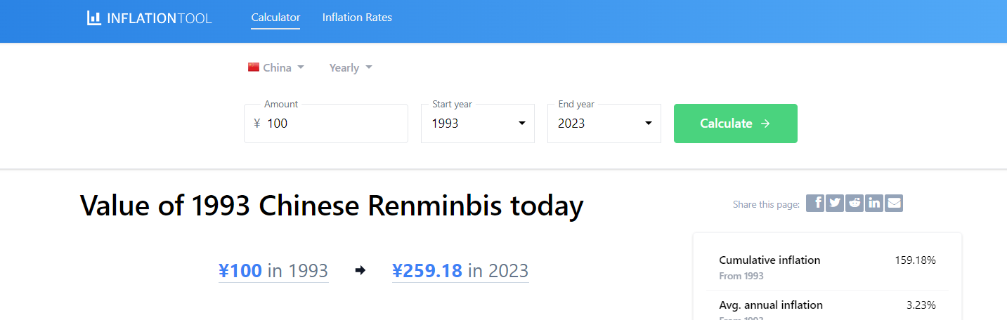 但怎么感觉不太准,93年的100元和现在不到300元感觉也不是很匹配。。。