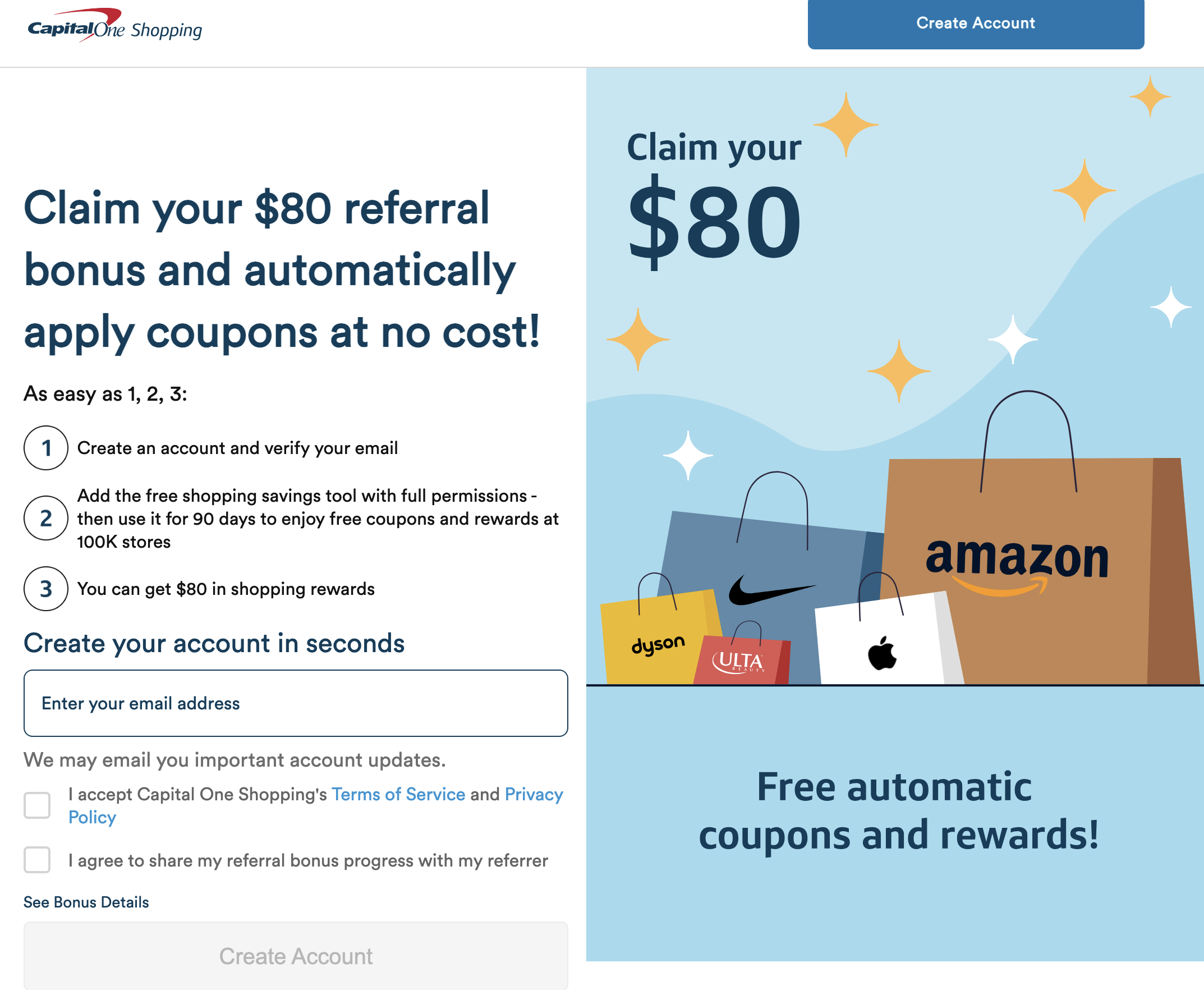 现在 Capital One Shopping Portal 有 refer bonus,具体bonus金额是targeted,最高可到双方各拿 $80: