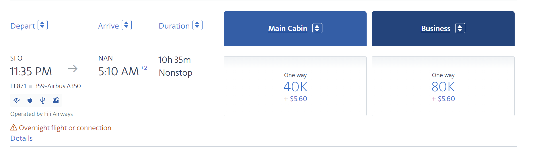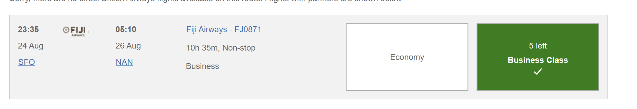 sfo nan每周只有2 4 6有直飞,但是lax nan天天都有,你要用BA出,不然很难出到2+的票