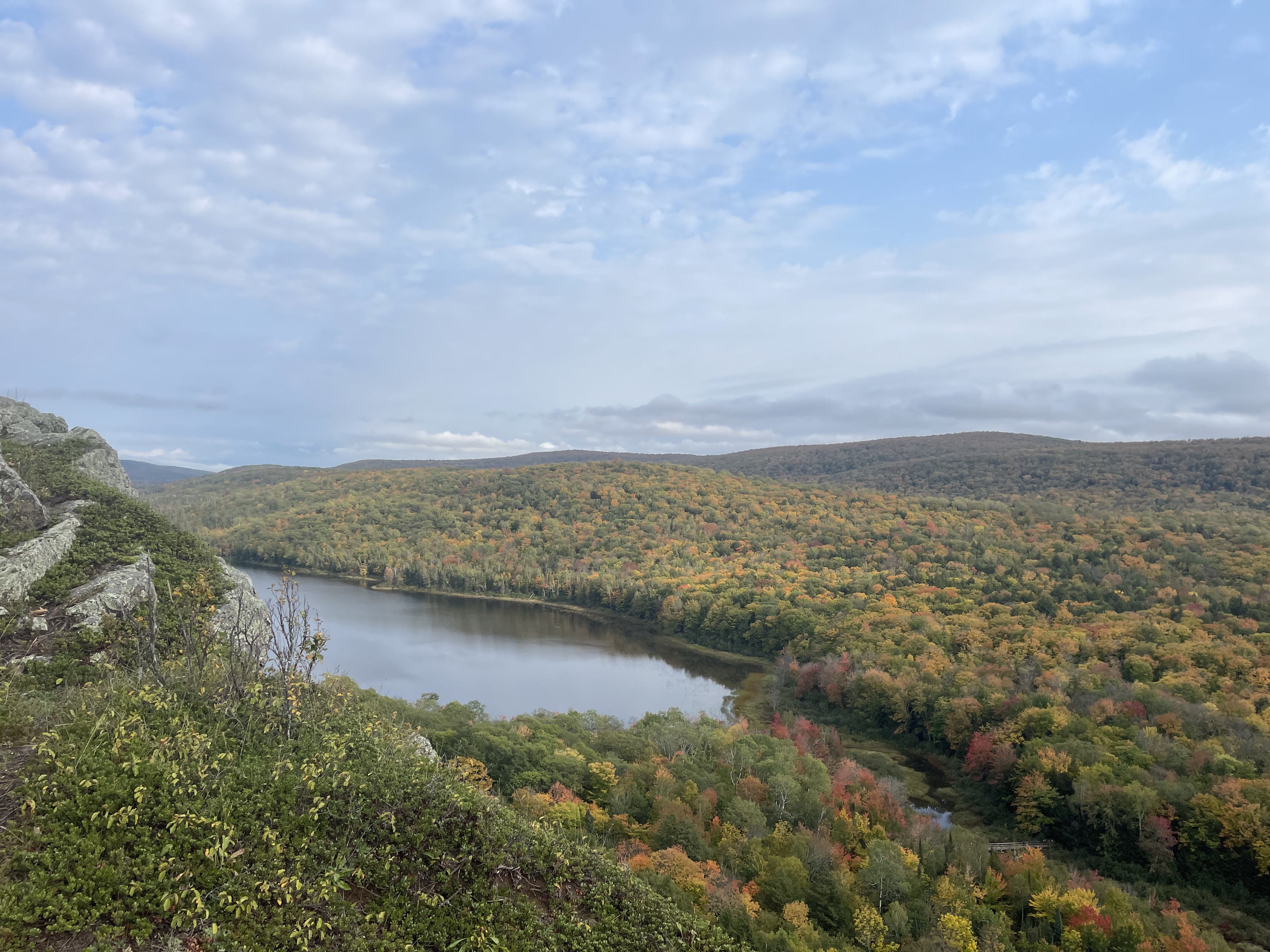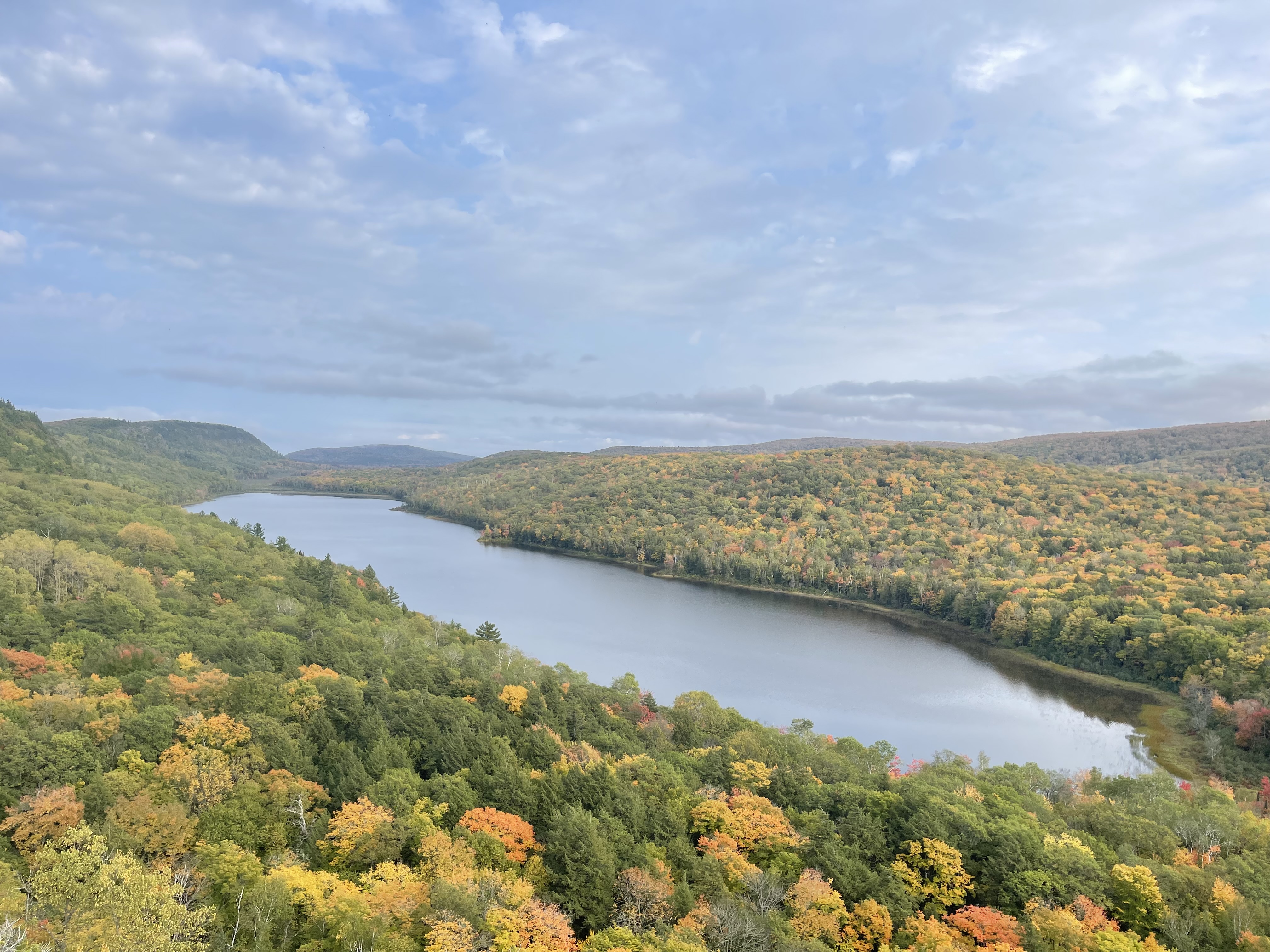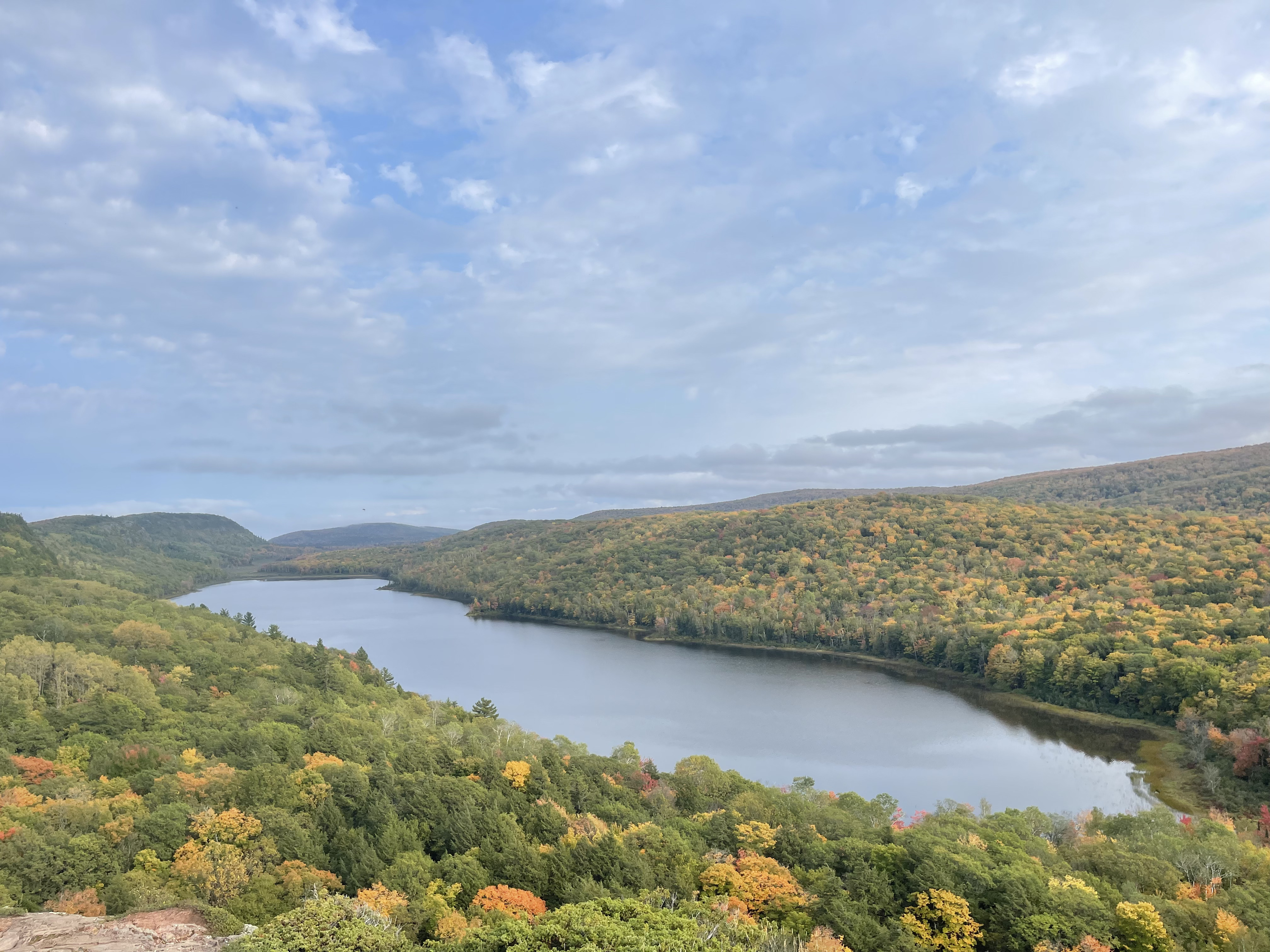 每次去都会打卡云湖-Lake of the Clouds Overlook (导航可以用直接用)。是一个高点,可以俯瞰大片树林/枫叶。进入停车场入口需要交门票11美金/车,有效期是一天,门票上会注明。