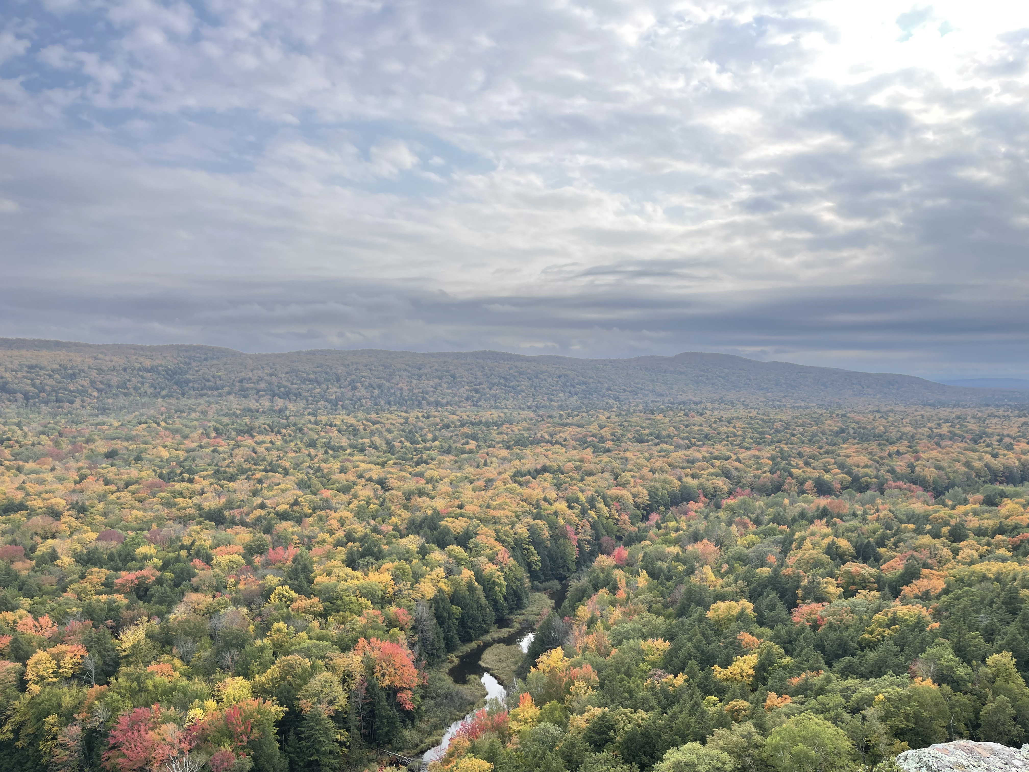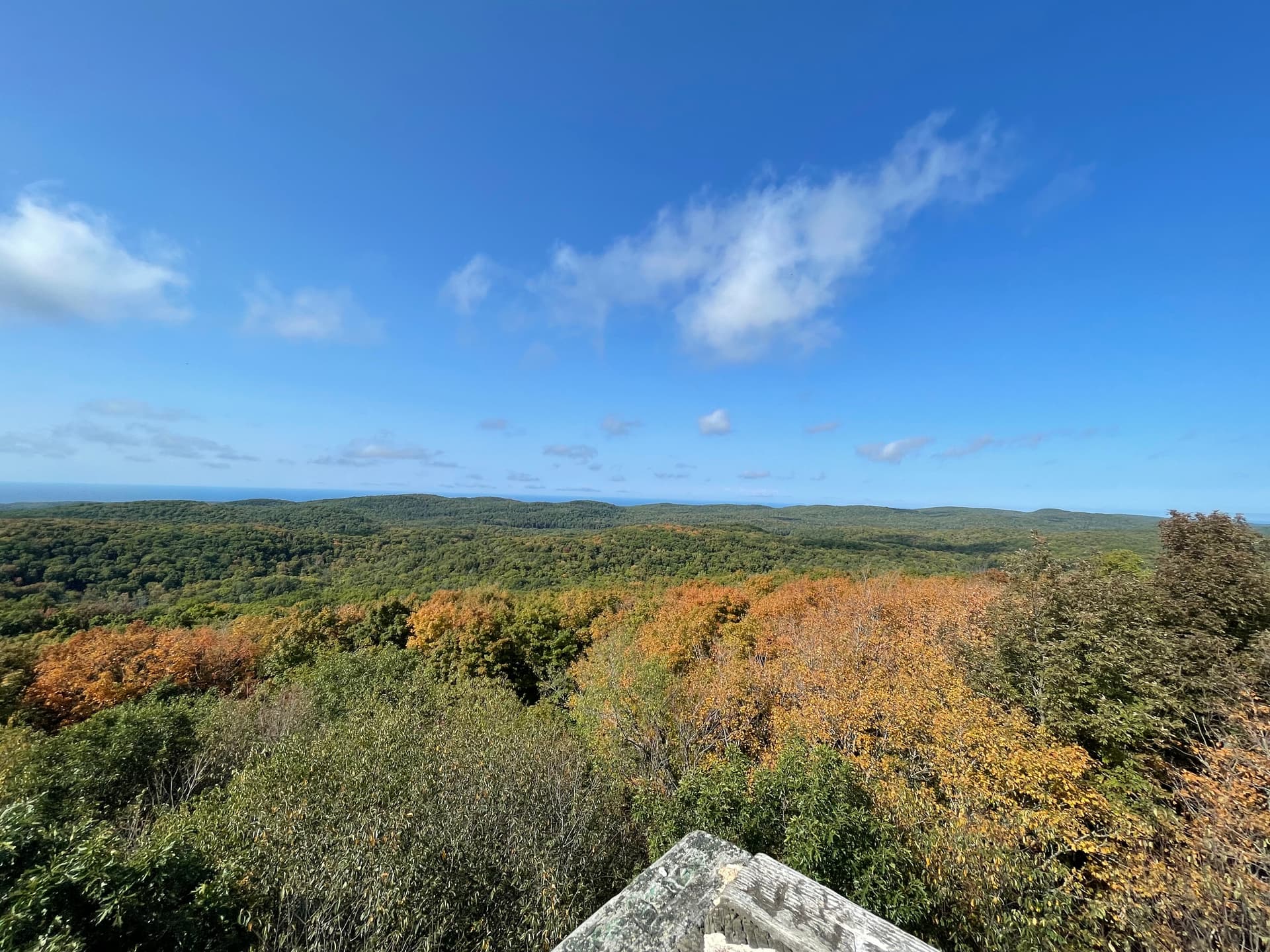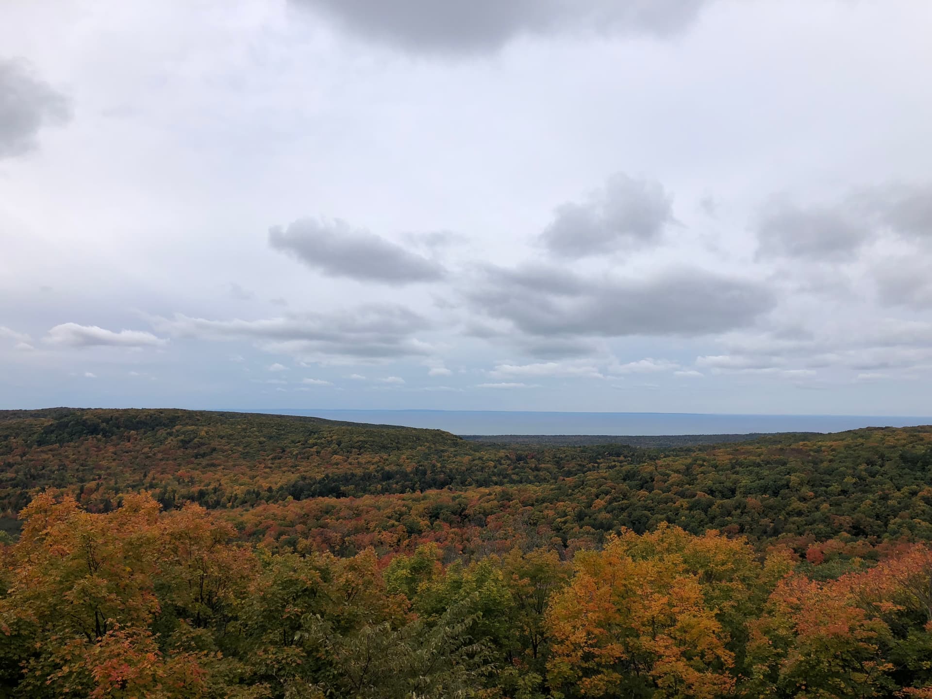 每次去都会打卡云湖-Lake of the Clouds Overlook (导航可以用直接用)。是一个高点,可以俯瞰大片树林/枫叶。进入停车场入口需要交门票11美金/车,有效期是一天,门票上会注明。