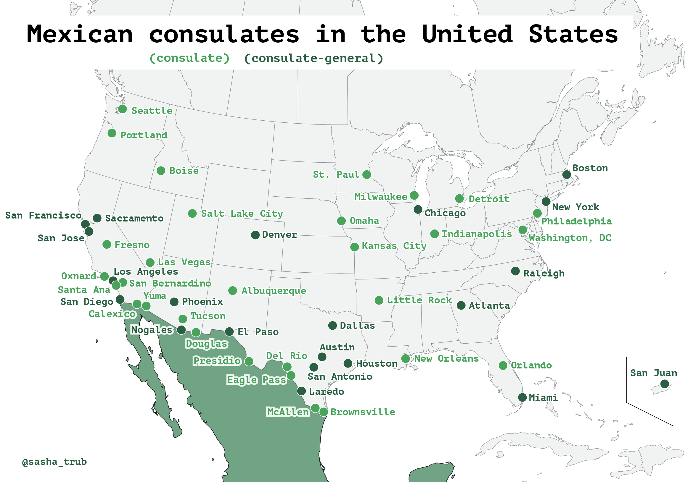 另外所有墨西哥在美加的领馆地图