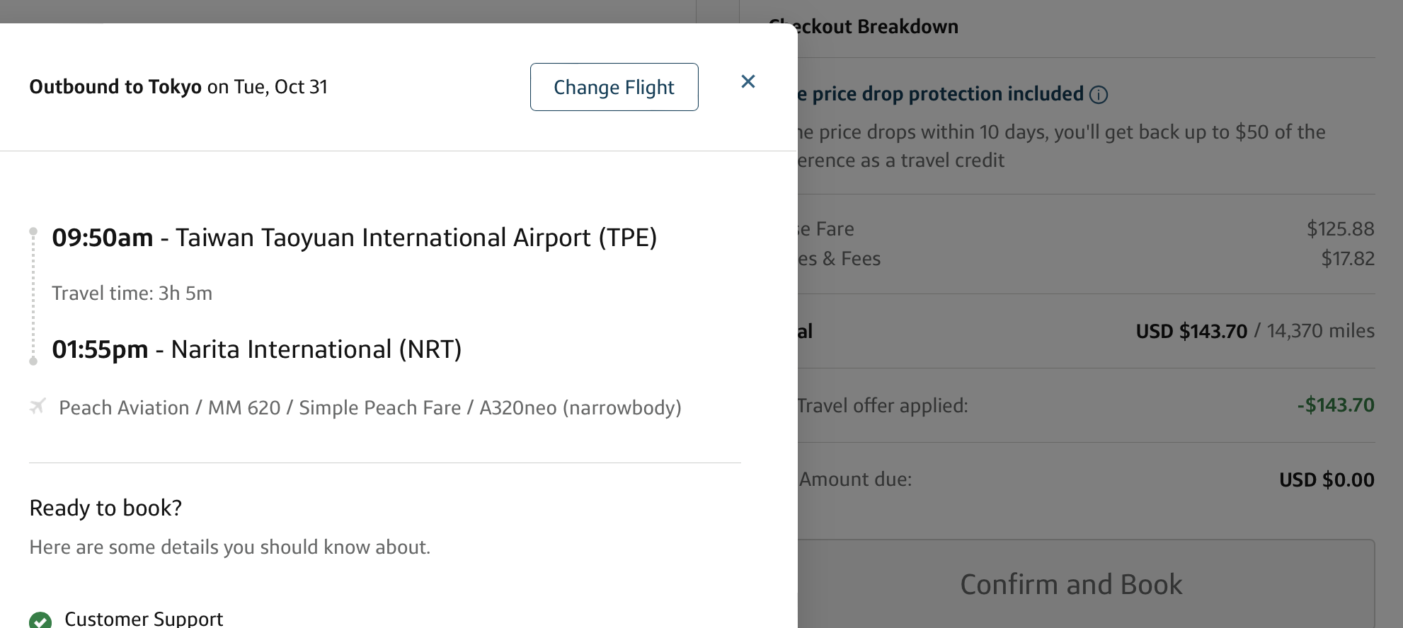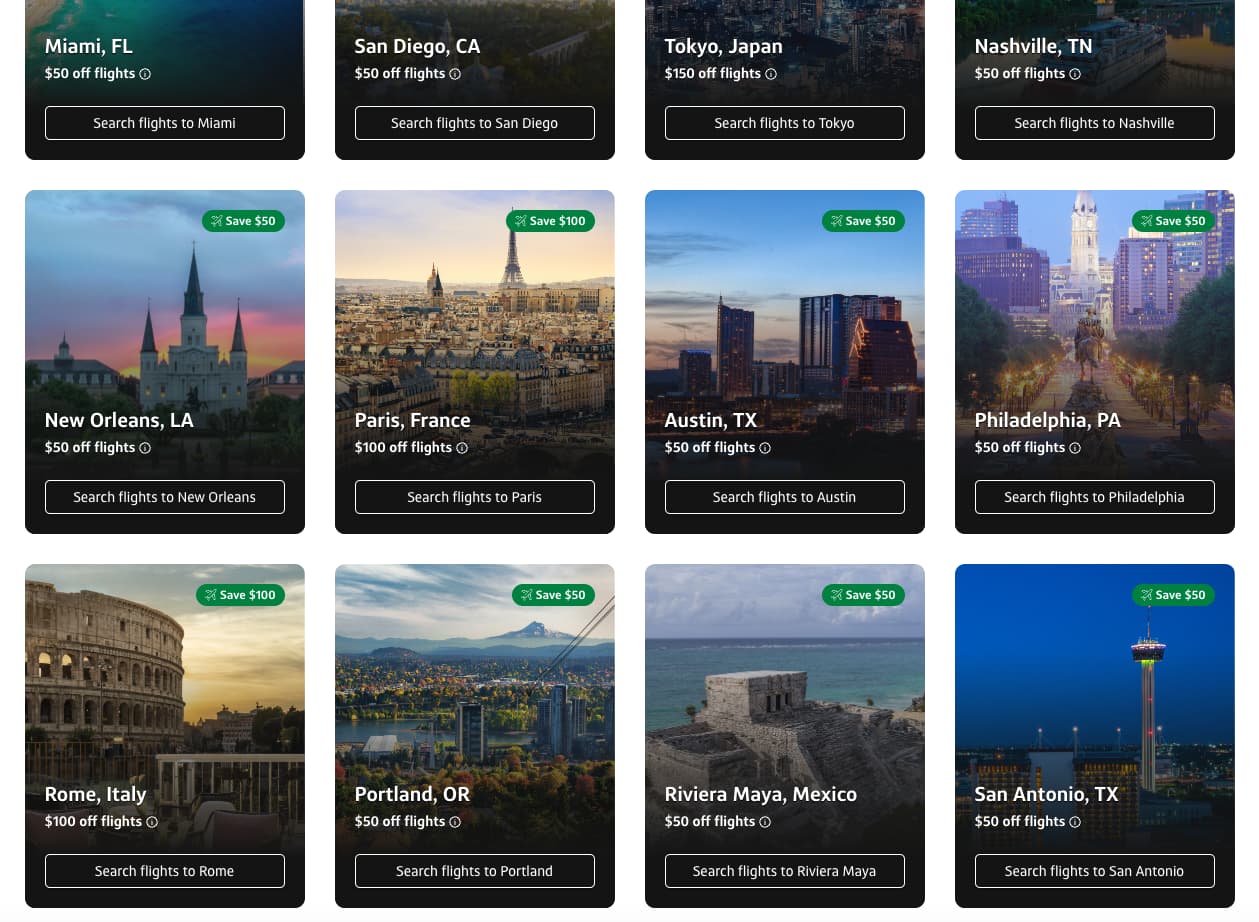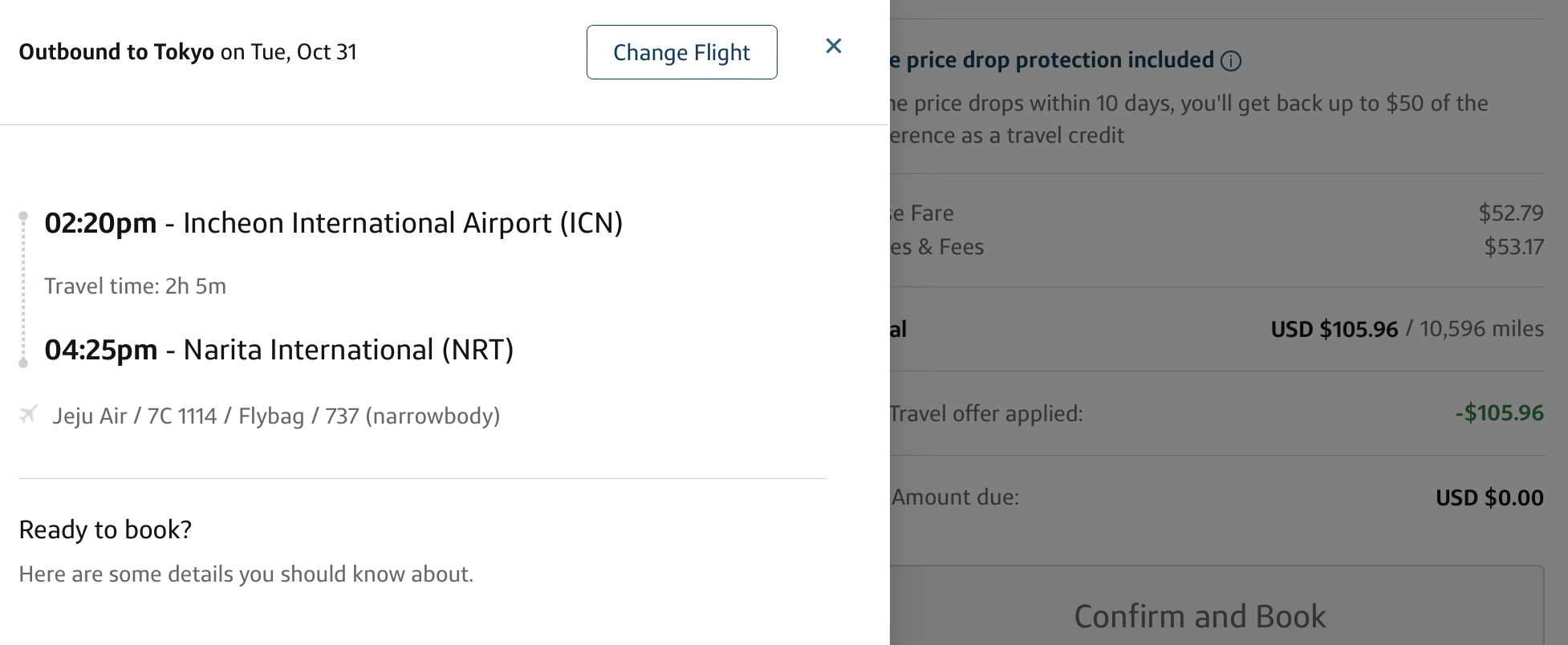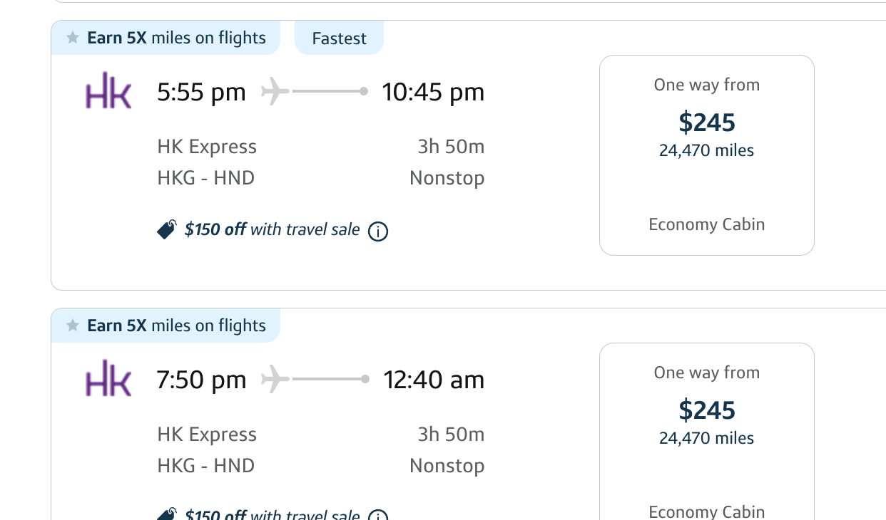 Terms and Conditions: This is a destination-based offer, and can only be applied to bookings made through Capital One Travel from/to eligible destinations during the offer window. This offer cannot be retroactively applied to bookings made before the offer starts, and will not be applied to any bookings made after the offer expires. This offer is eligible for select flights to Tokyo, Japan. Offer eligibility is indicated during the search and booking processes. This offer will provide customers with $150 off their flight booking. This offer will only be available until the earlier of (i) Oct 17 2023, or (ii) while supplies last; and the offer is only available for one booking per account. Your Capital One account must be open and in good standing to be eligible for the offer. Travel offers are valid for consumer, non-commercial use only. Travel offers are non-transferrable, have no cash value, and may not be redeemed for cash, and may not be combined with other offers unless specified. We reserve the rights to: alter or terminate a travel offer at any time; change these terms and conditions associated with travel offers; and/or disqualify any account holder from any travel offers. See Capital One Travel for full terms and conditions.